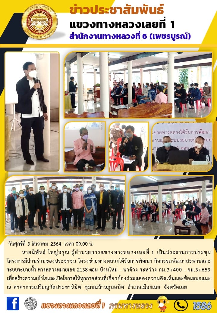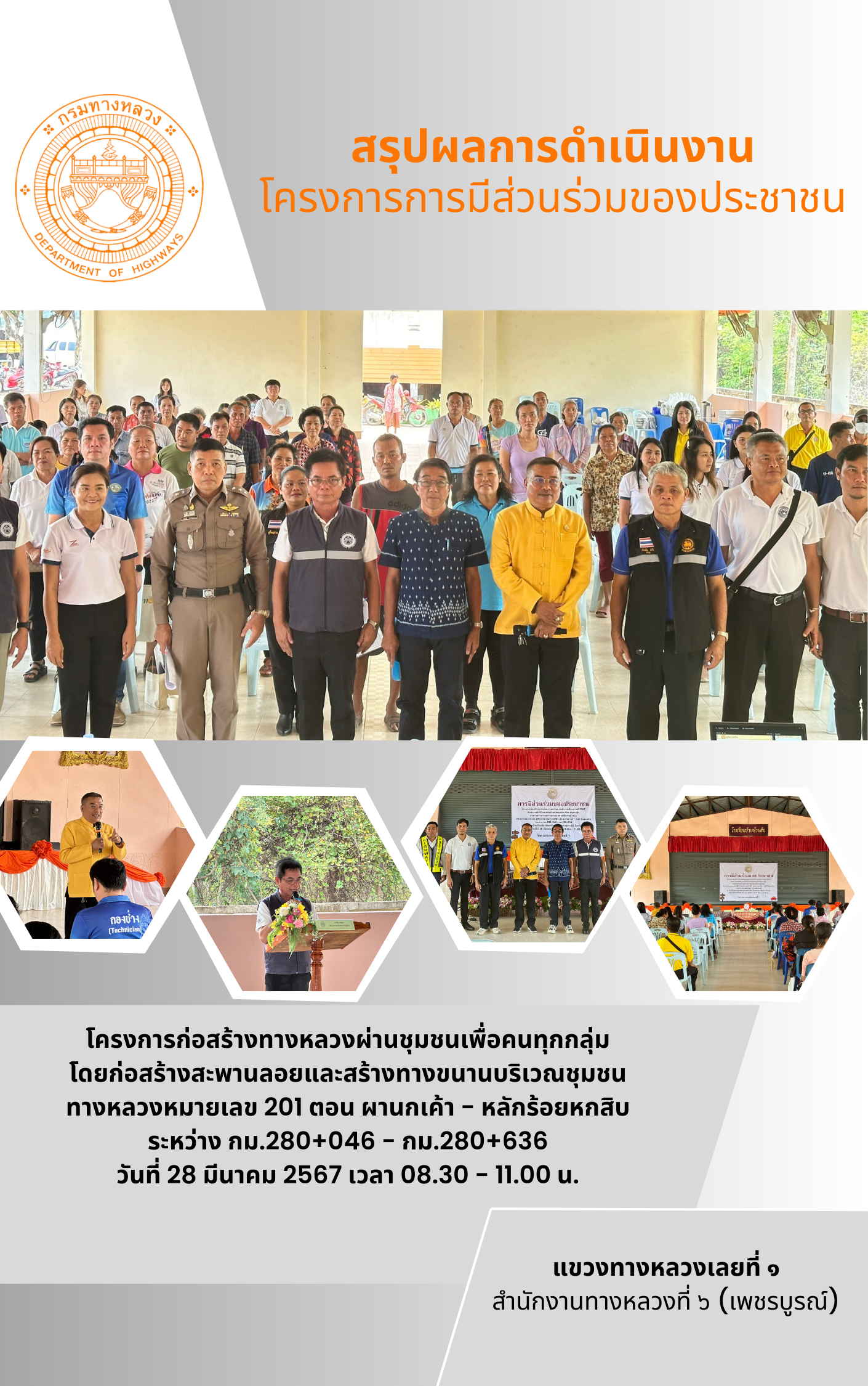 การมีส่วนร่วมของประชาชน เพื่อชี้แจงรายละเอียด และรับฟังความคิดเห็น และข้อเสนอแนะ โครงการก่อสร้างทางหลวงผ่านชุมชนเพื่อคนทุกกลุ่ม