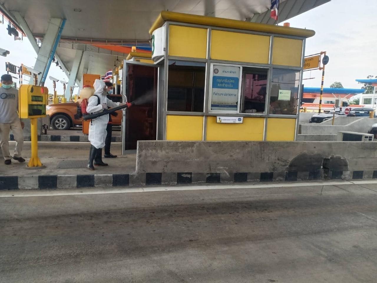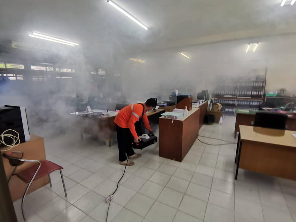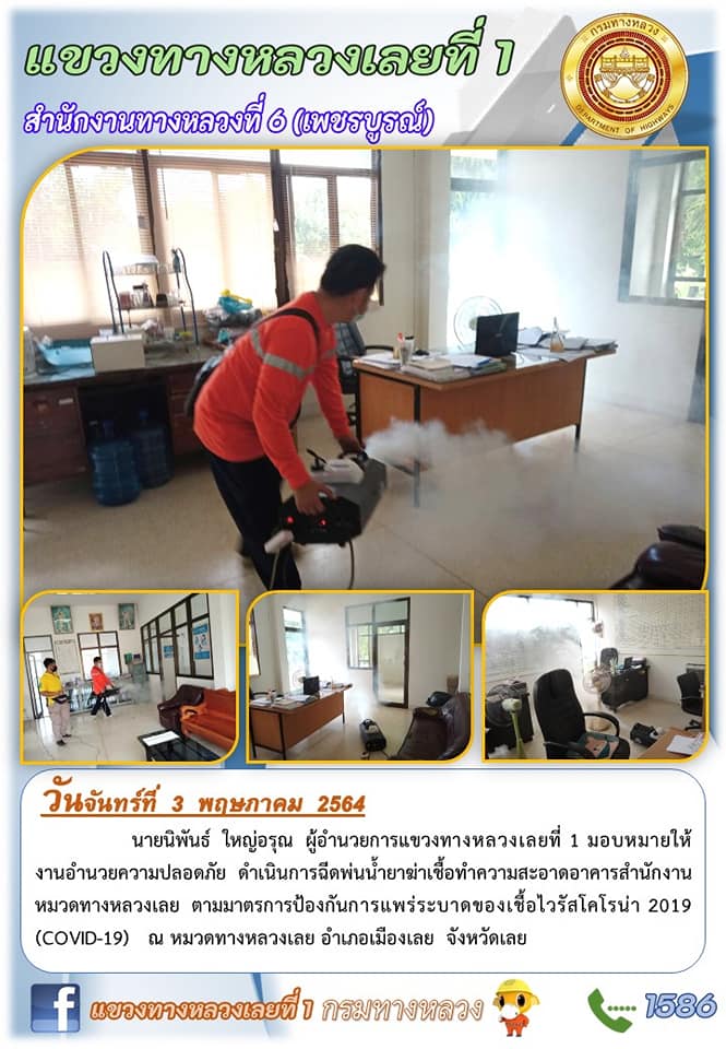 ฉีดพ่นน้ำยาฆ่าเชื้อทำความสะอาดอาคารสำนักงานหมวดทางหลวงเลย