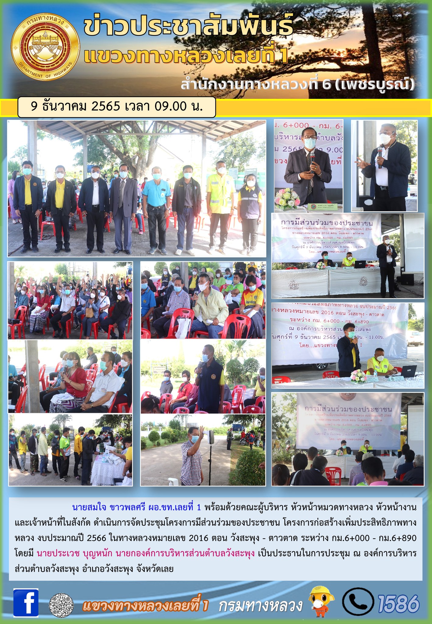 ประชุมโครงการมีส่วนร่วมของประชาชน โครงการก่อสร้างเพิ่มประสิทธิภาพทางหลวง งบประมาณปี 2566 ในทางหลวงหมายเลข 2016 ตอน วังสะพุง - ตาวตาด