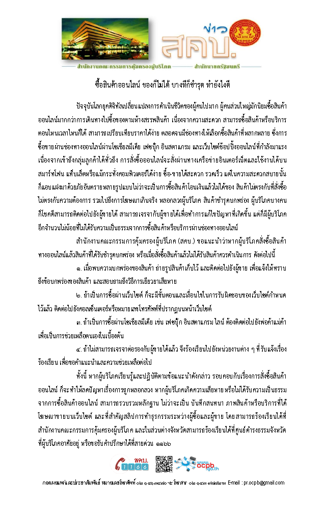 สคบ.ด้านการคุ้มครองผู้บริโภค
