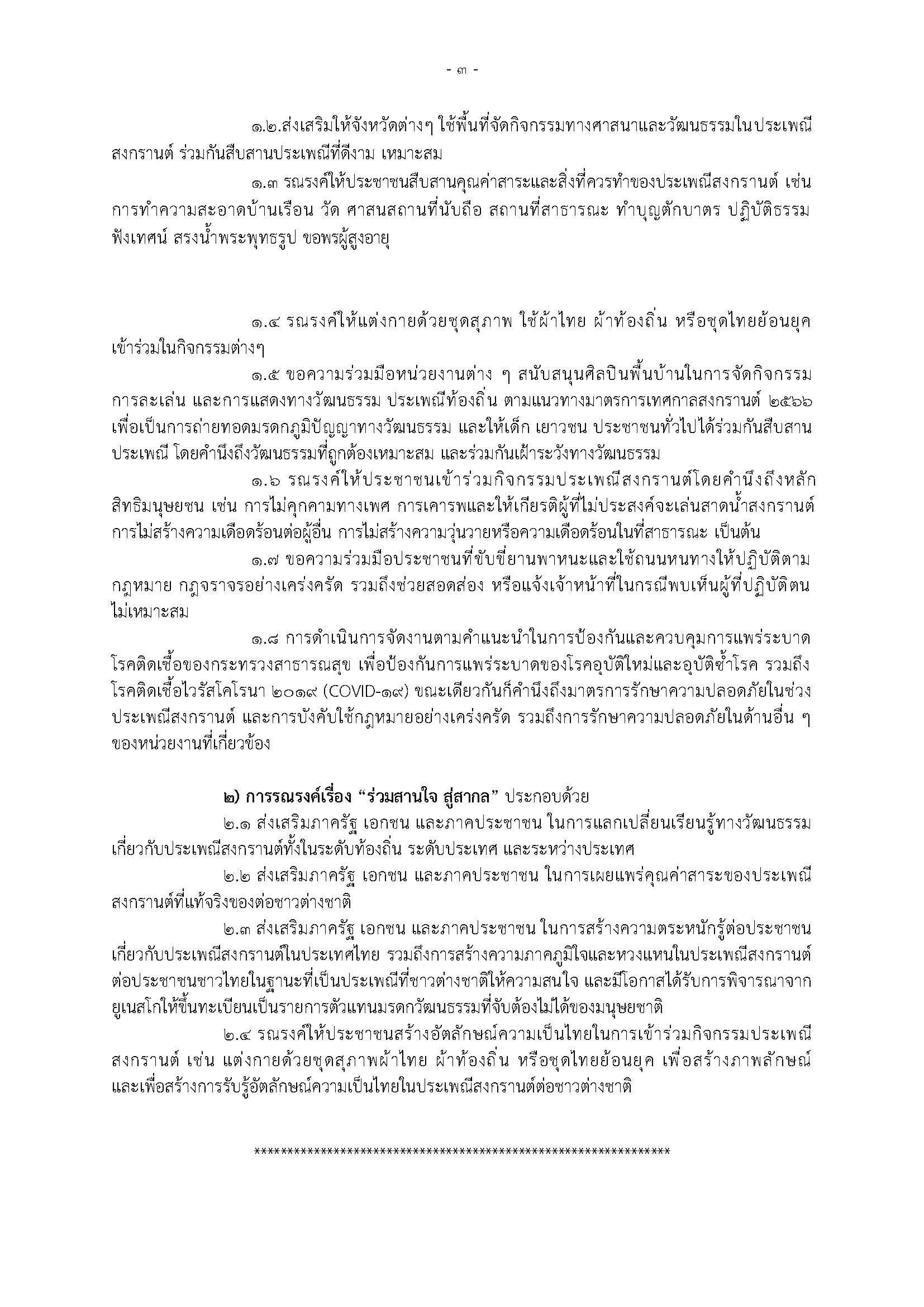 แนวทางและมาตรการณรงค์เพื่อสืบสานคุณค่าทางวัฒนธรรมเนื่องในประเพณีสงกรานต์ พุทธศักราช 2566