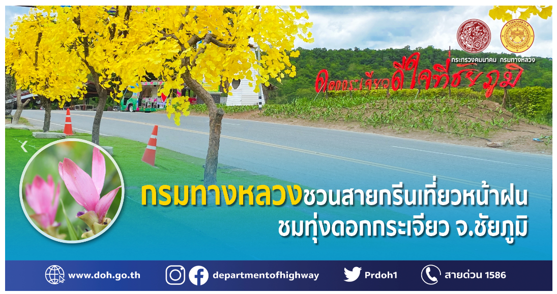 กรมทางหลวง ชวนสายกรีนเที่ยวหน้าฝน ชมทุ่งดอกกระเจียว จ.ชัยภูมิ
