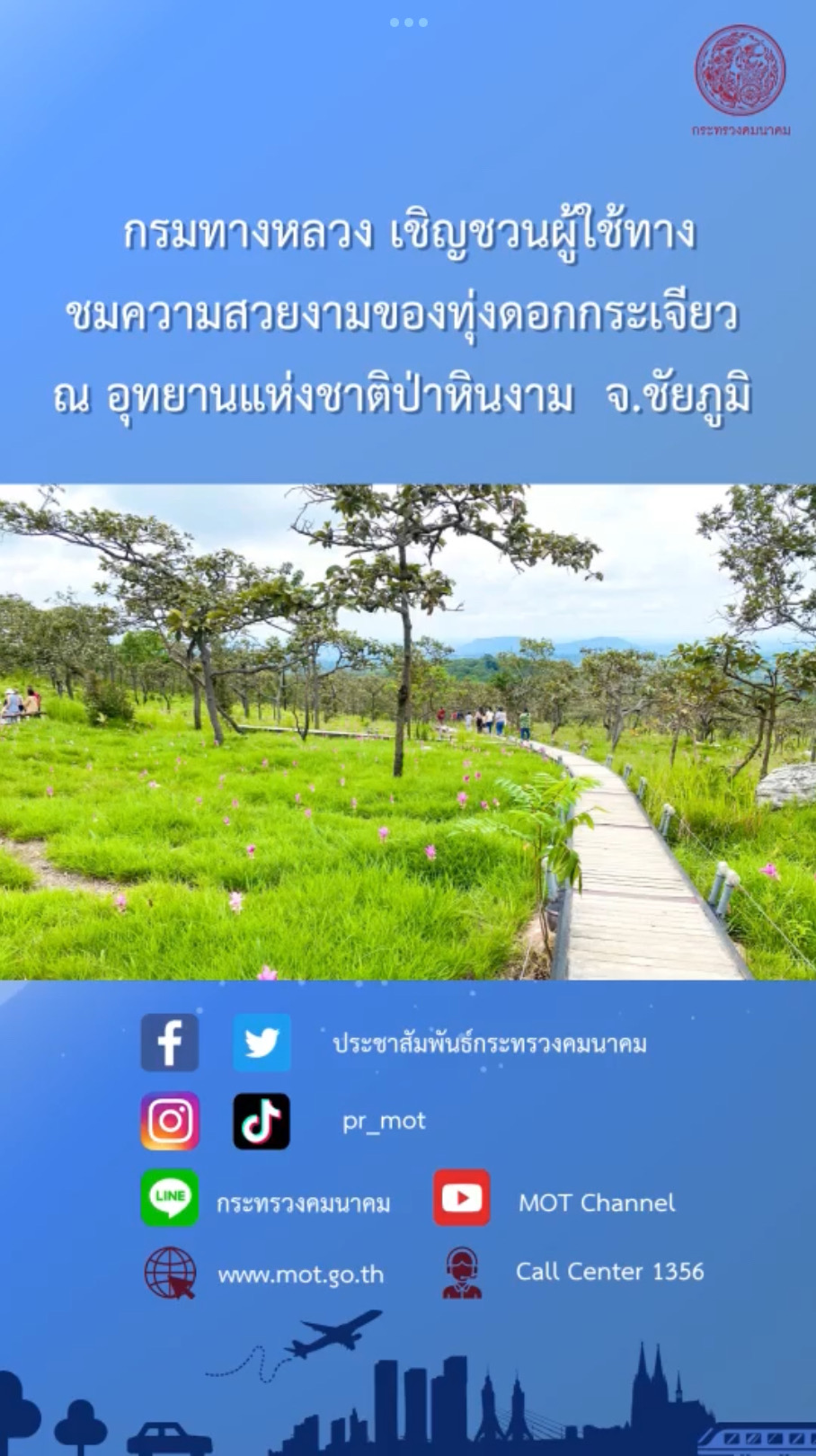 ?? กรมทางหลวง เชิญชวนผู้ใช้ทางชมความสวยงาม ของทุ่งดอกกระเจียว “ราชินีแห่งป่าฝน” ณ อุทยาน แห่งชาติป่าหินงาม จังหวัดชัยภูมิ ?? ในช่วงเดือน มิ.ย. - ส.ค. 2565