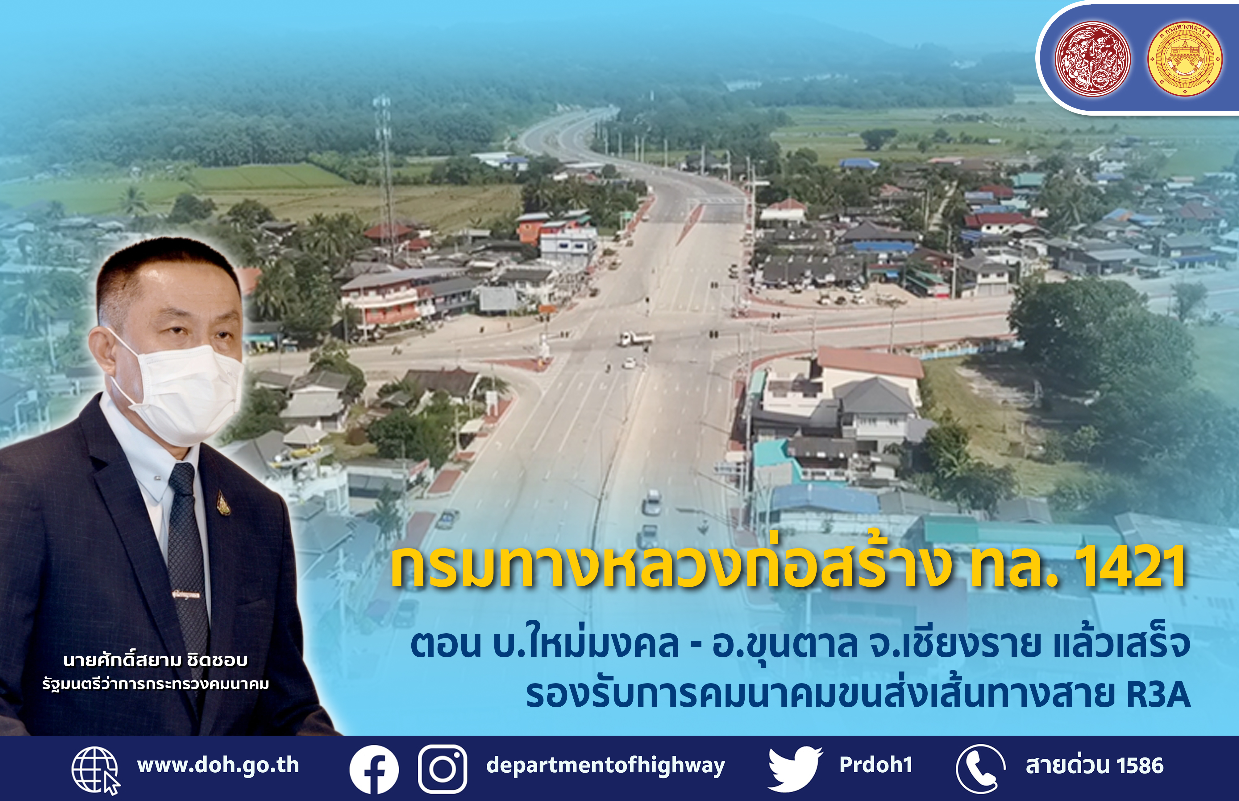 กรมทางหลวงก่อสร้าง ทล.1421 ตอน บ.ใหม่มงคล – อ.ขุนตาล จ.เชียงราย แล้วเสร็จ รองรับการคมนาคมขนส่งเส้นทางสาย R3A