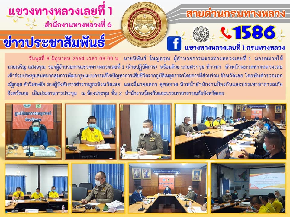 วันพุธที่ 9 มิถุนายน 2564 เวลา 09.00 น. นายนิพันธ์ ใหญ่อรุณ ผู้อำนวยการแขวงทางหลวงเลยที่ 1