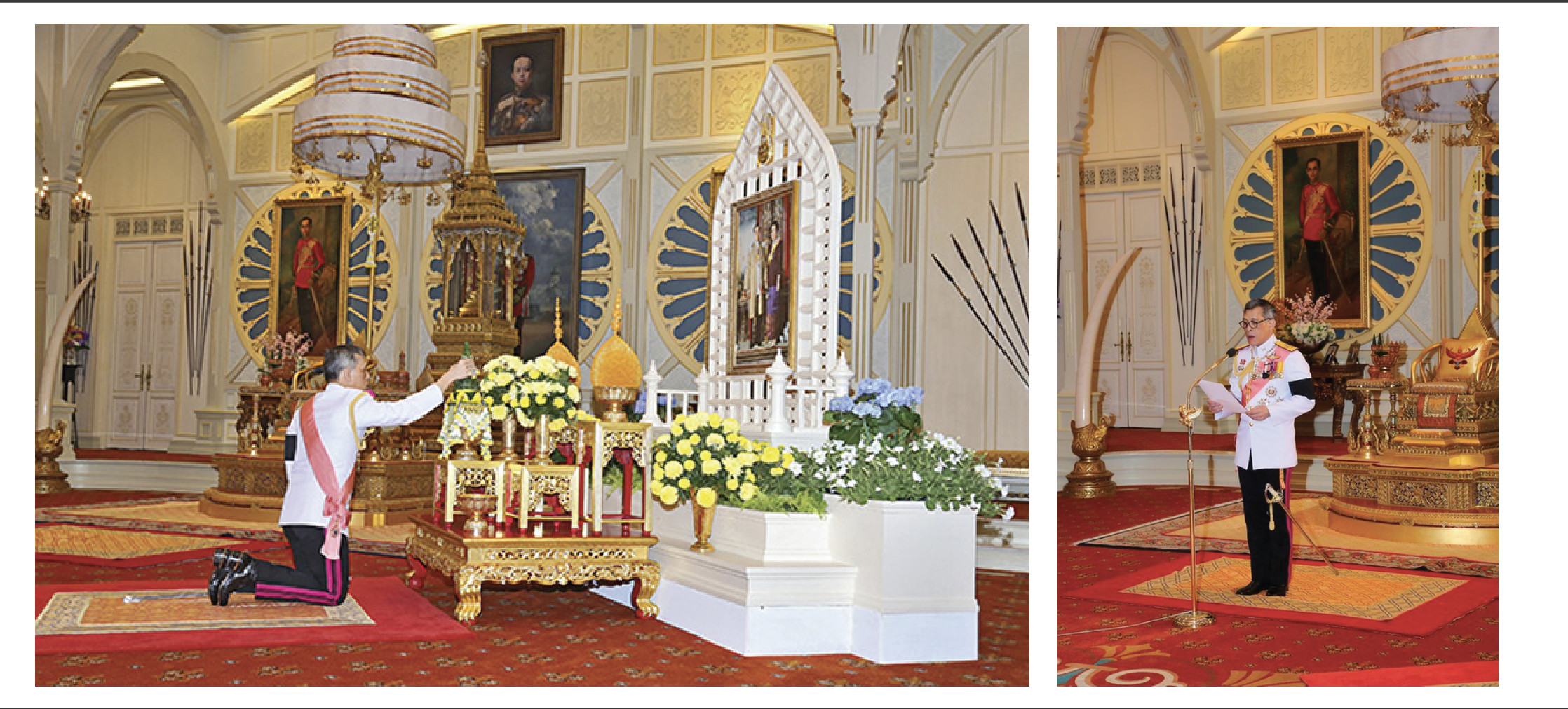 วันพฤหัสบดีที่ 1 ธันวาคม 2559 เวลา 19.16 น. ปวงชนชาวไทยทั้งผอง ต่างปลาบปลื้มเป็นล้นพ้น เมื่อสมเด็จ พระบรมโอรสาธิราชฯ สยามมกุฎราชกุมาร เสด็จออก ณ ห้อง UPPER MAIN CR.M (ห้อง วปร.) พระที่นั่งอัมพรสถาน พระราชวังดุสิต พระราชทานพระบรมราชวโรกาสให้ พล.อ.เปรม ติณสูลานนท์ ผู้สำเร็จราชการ แทนพระองค์ นายพรเพชร วิชิตชลชัย ประธานสภานิติบัญญัติแห่งชาติ พล.อ.ประยุทธ์ จันทร์โอชา นายกรัฐมนตรี และ นายวีระพล ตั้งสุวรรณ ประธานศาลฎีกา เข้าเฝ้าฯ เพื่อกราบบังคมทูลอัญเชิญพระรัชทายาทเสด็จ ขึ้นทรงราชย์เป็นรัชกาลที่ 10