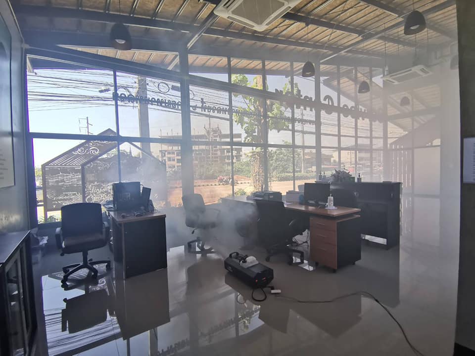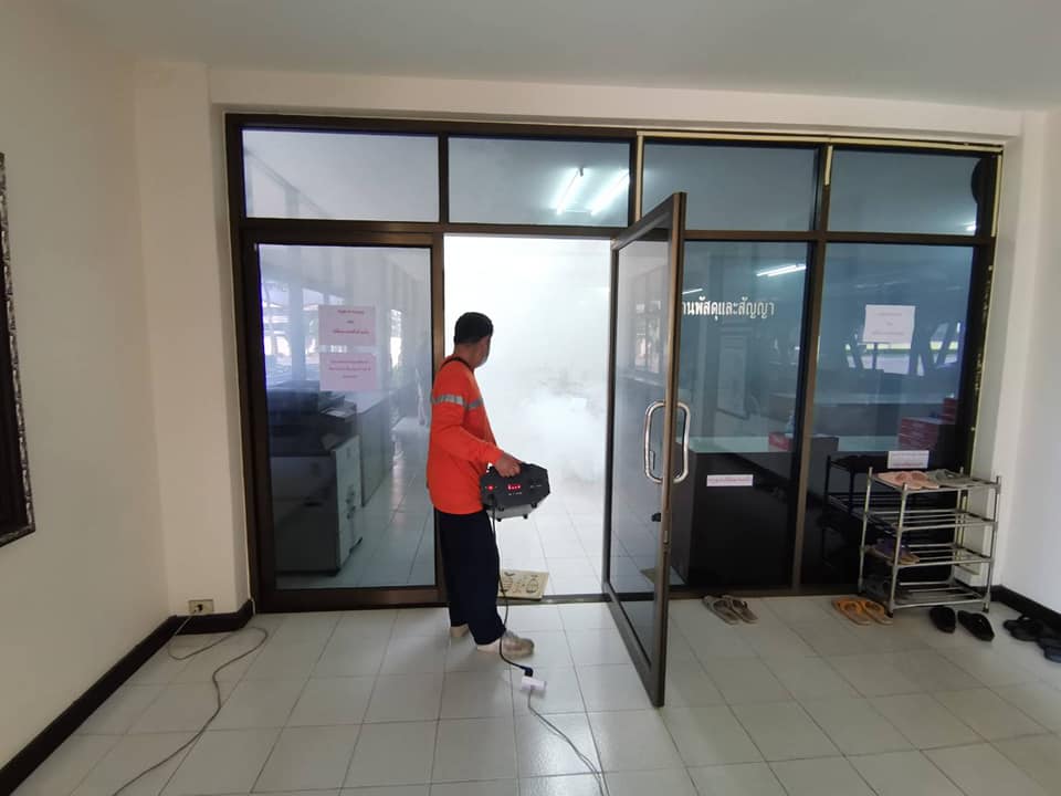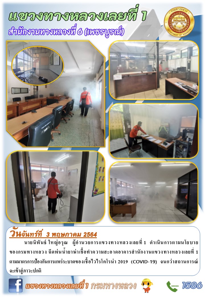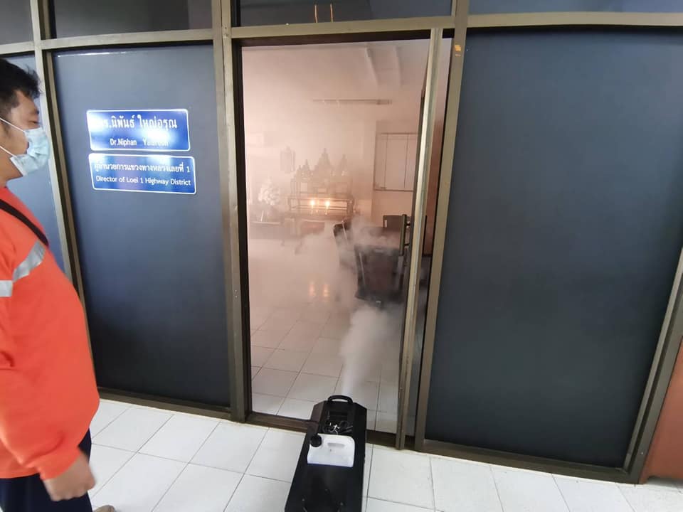 ฉีดพ่นน้ำยาฆ่าเชื้อทำความสะอาดอาคารสำนักงานแขวงทางหลวงเลยที่ 1