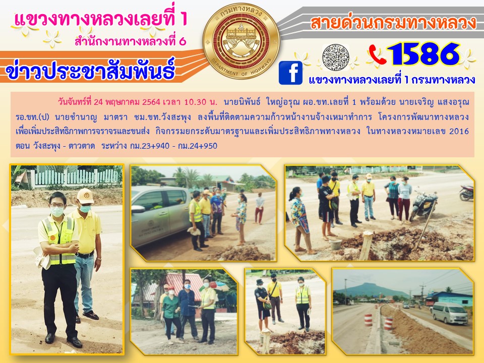 ลงพื้นที่ติดตามความก้าวหน้างานจ้างเหมาทำการ โครงการพัฒนาทางหลวงเพื่อเพิ่มประสิทธิภาพการจราจรและขนส่ง