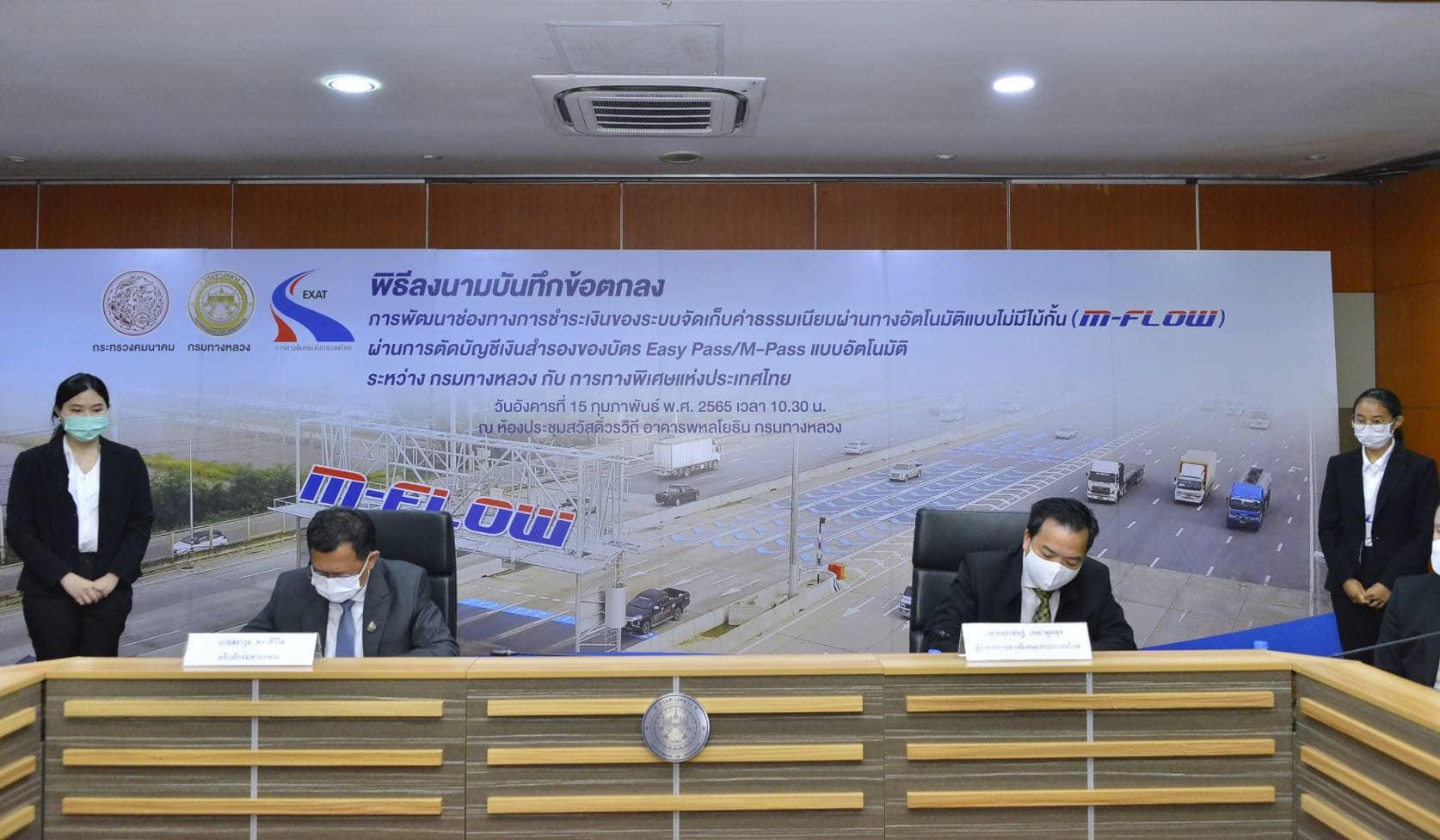 กรมทางหลวงจัดพิธีลงนามบันทึกข้อตกลงว่าด้วยการพัฒนาช่องทางการชำระเงินของระบบจัดเก็บค่าธรรมเนียมผ่านทางอัตโนมัติแบบไม่มีไม้กั้น (M-Flow) ผ่านการตัดบัญชีเงินสำรองของบัตร Easy Pass /