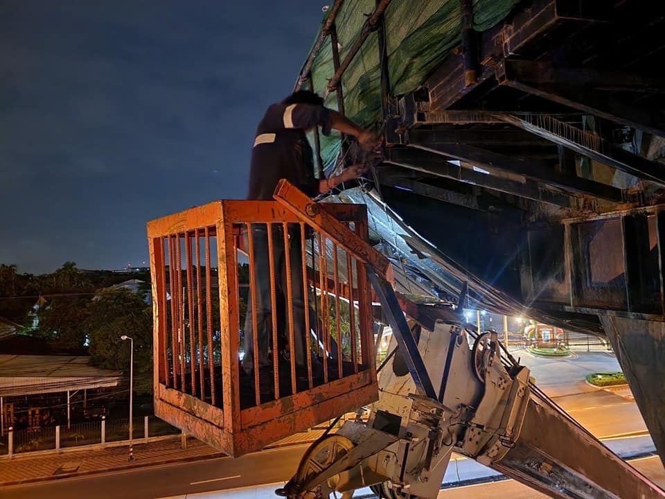 “ศักดิ์สยาม” สั่งด่วนให้กรมทางหลวงลงพื้นที่แก้ไขกรณีน้ำขังผ้าใบหล่นใส่รถยนต์บนถนนพระราม 2 ให้เยียวยาผู้เสียหายทันที อธิบดีสั่งเร่งเจาะรูน้ำที่ขังออกจากผ้าใบให้หมดทุกเสา ติดตั้งเสริมตาข่ายกันตกให้แข็งแรงปลอดภัย และสั่งหยุดงานจนถึงวันที่ 14 ส.ค. 65 พร้อมกำชับเพิ่มมาตรการความปลอดภัยเต็มที่ในทุกโครงการก่อสร้าง ป้องกันไม่ให้เกิดเหตุซ้ำ