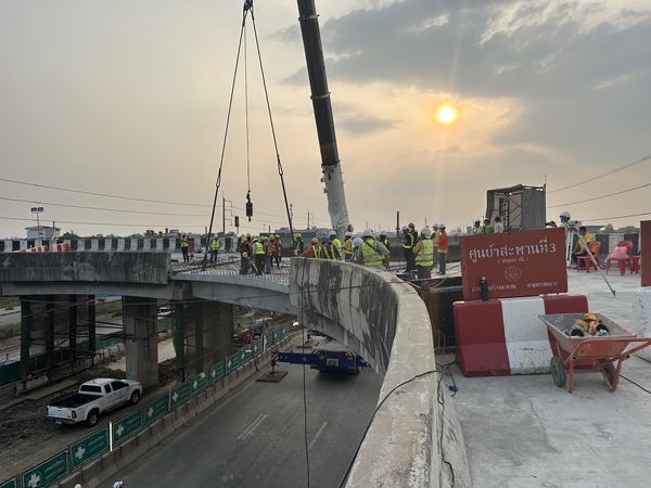 กรมทางหลวง โดยศูนย์สร้างและบูรณะสะพานที่ 3 (ปทุมธานี) รายงานความคืบหน้าการดำเนินการซ่อมแซมและบูรณะสะพานกลับรถบนถนนพระรามที่ 2 ที่ กม.34 ของวันที่ 31 ตุลาคม 2565 ตั้งแต่เวลา 10.00 น.จนถึงเวลา 22.00 น. ขณะนี้ศูนย์สร้างและบูรณะสะพานที่ 3 (ปทุมธานี) ได้ดำเนินการติดตั้งคานรูปตัวที ที่มีลักษณะเป็นคานคอนกรีตอัดแรงสำเร็จรูป จำนวน 5 คาน บนโครงสร้างสะพานกลับรถแล้วเสร็จเป็นที่เรียบร้อยแล้ว อีกทั้งได้ดำเนินการตรวจสอบระดับตำแหน่งของสะพานเพื่อติดตั้งเหล็กเสริมส่วนเชื่อมต่อโครงสร้างสะพานเพื่อให้เป็นไปตามข้อกำหนด โดยในวันพรุ่งนี้(1 พ.ย.65) จะดำเนินการเทคอนกรีตส่วนพื้นเพื่อเชื่อมคานรูปตัวที โดยตลอดการทำงานในทุกขั้นตอน ได้มีการตรวจสอบความปลอดภัยทุกขั้นตอน และจะมีการรายงานผลอย่างต่อเนื่อง