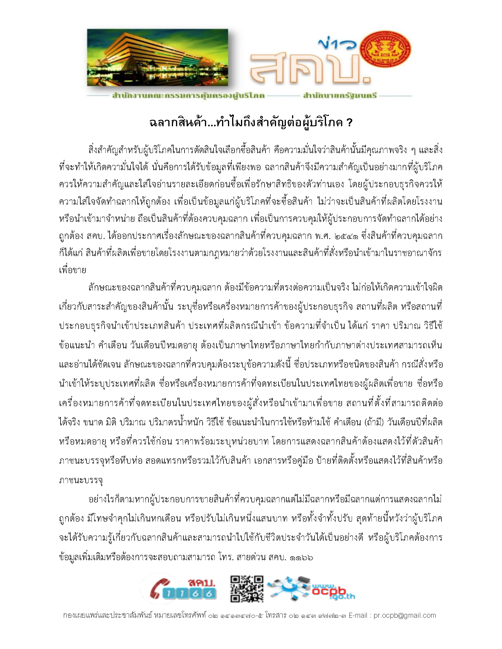 ข้อมูลข่าว : สคบ.ด้านการคุ้มครองผู้บริโภค