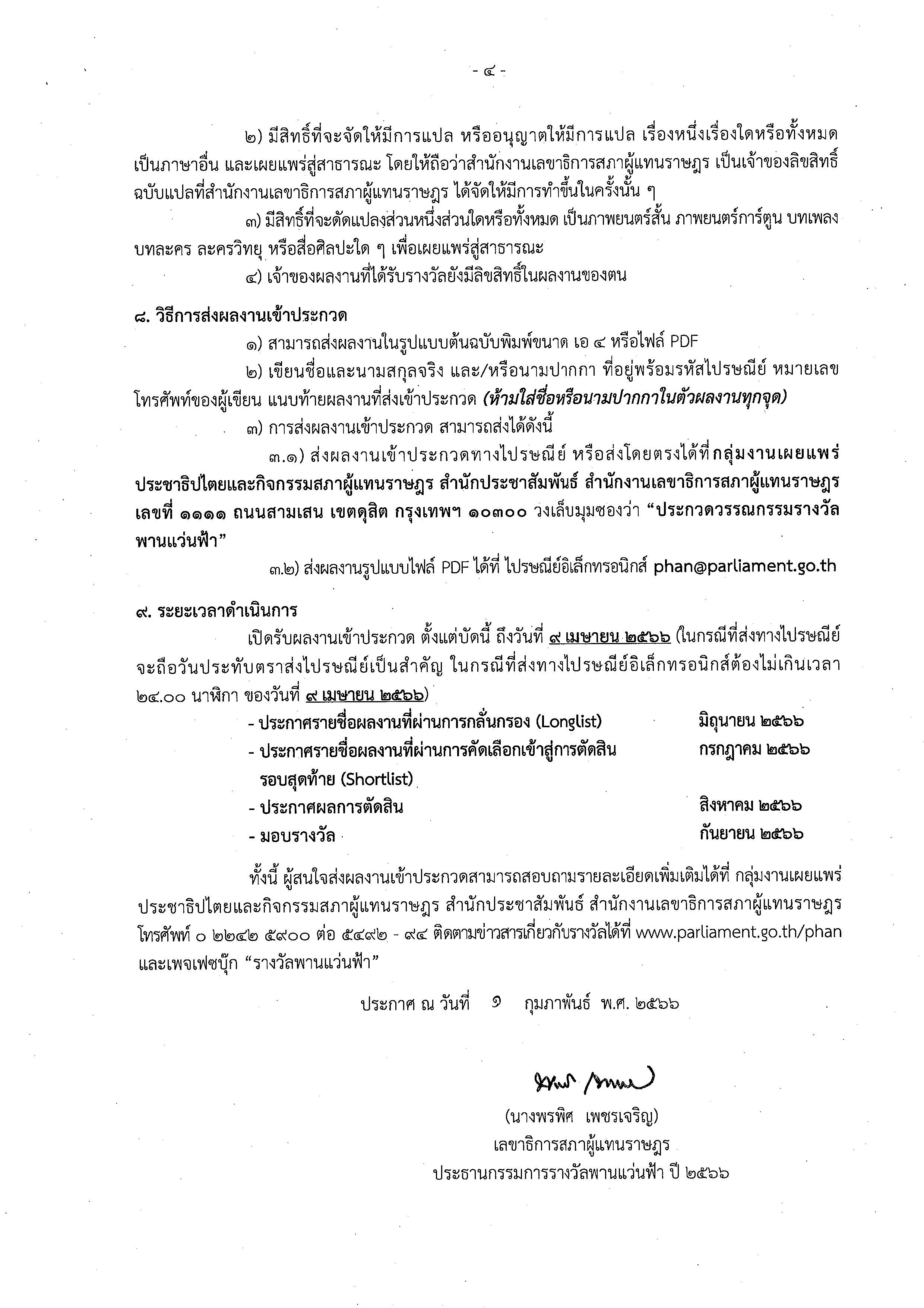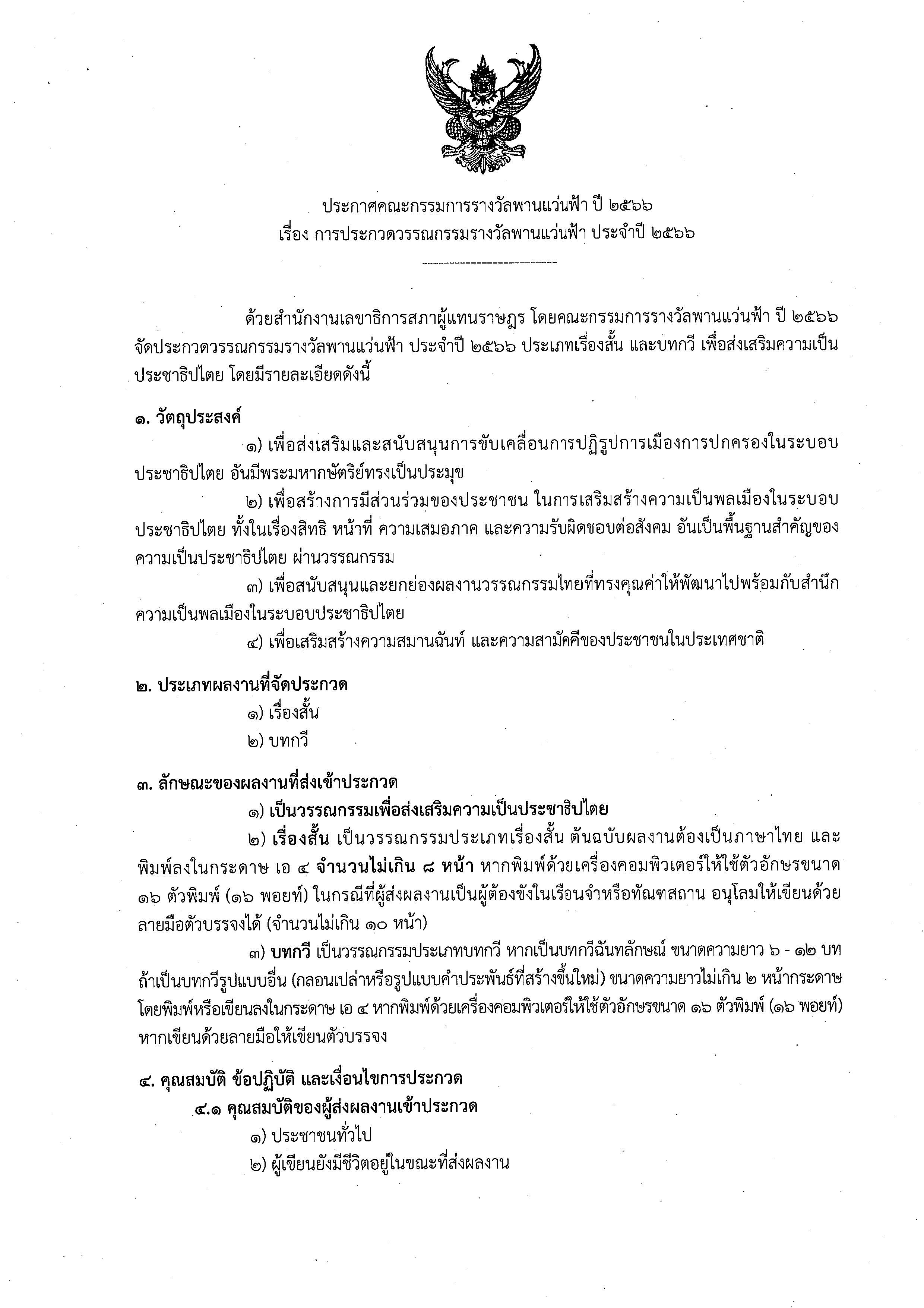 ข้อมูลข่าว : การประกวดวรรณกรรมรางวัลพานแว่นฟ้า ประจำปี 2566