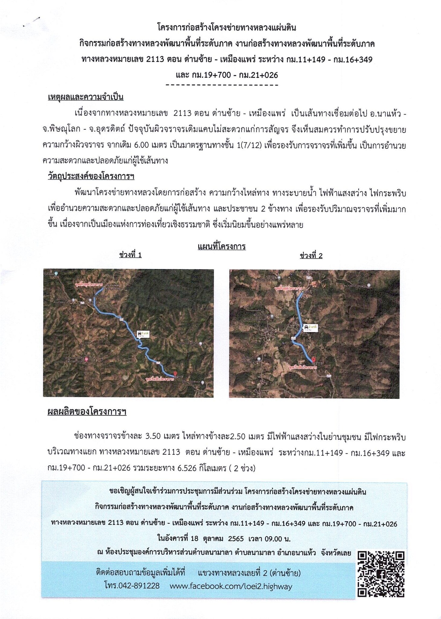 โครงการประชาชนมีส่วนร่วม ทางหลวงหมายเลข 2113 ตอน ด่านซ้าย - เหมืองแพร่ ระหว่าง กม.11+149 - กม.16+349 และ กม.19+700 - กม.21+026