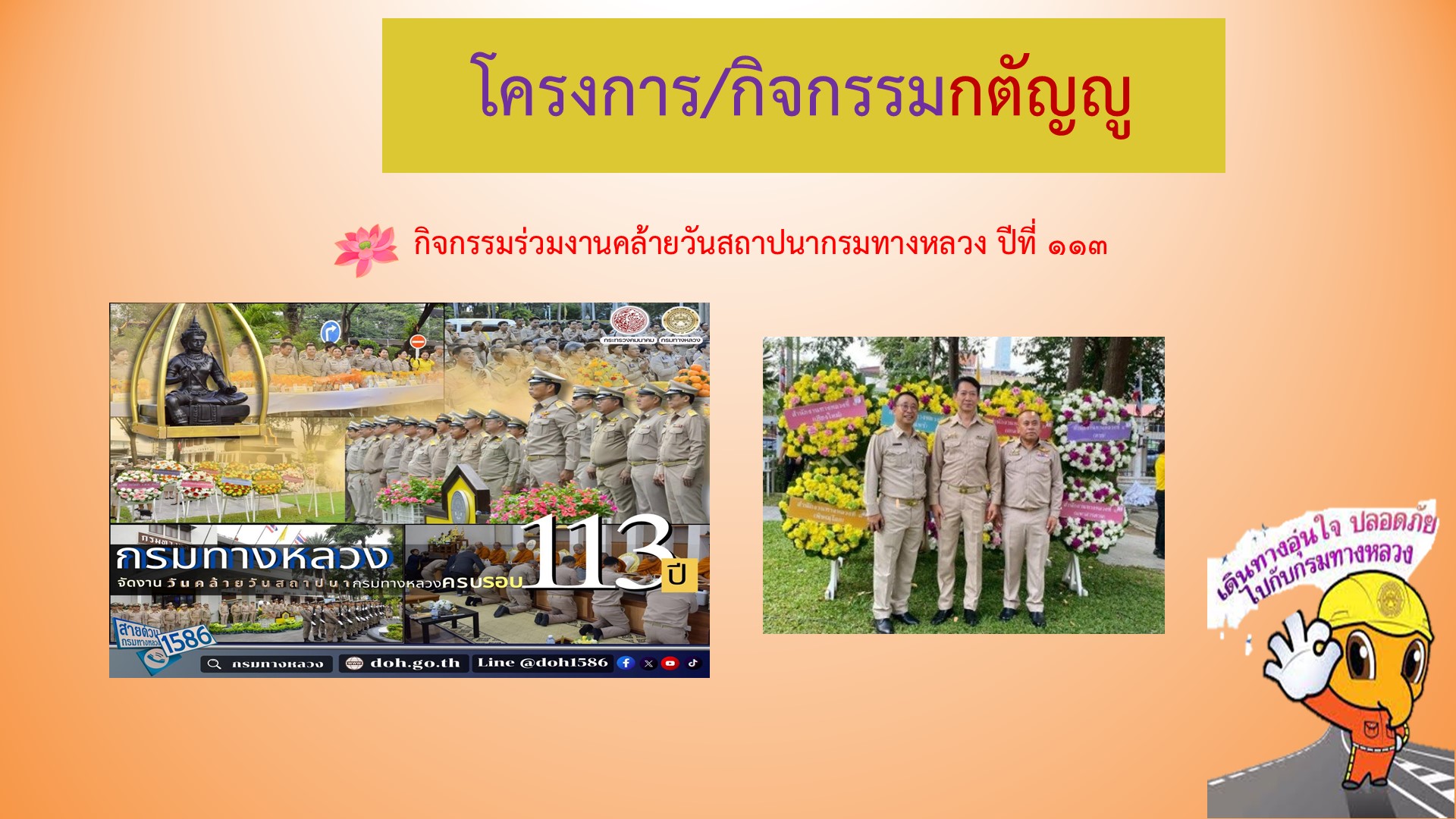 วิสัยทัศน์ : มุ่งมันบำรุงรักษาทางเสริมสร้างความปลอดภัย ให้กับผู้ใช้ทางอย่างยั่งยืน