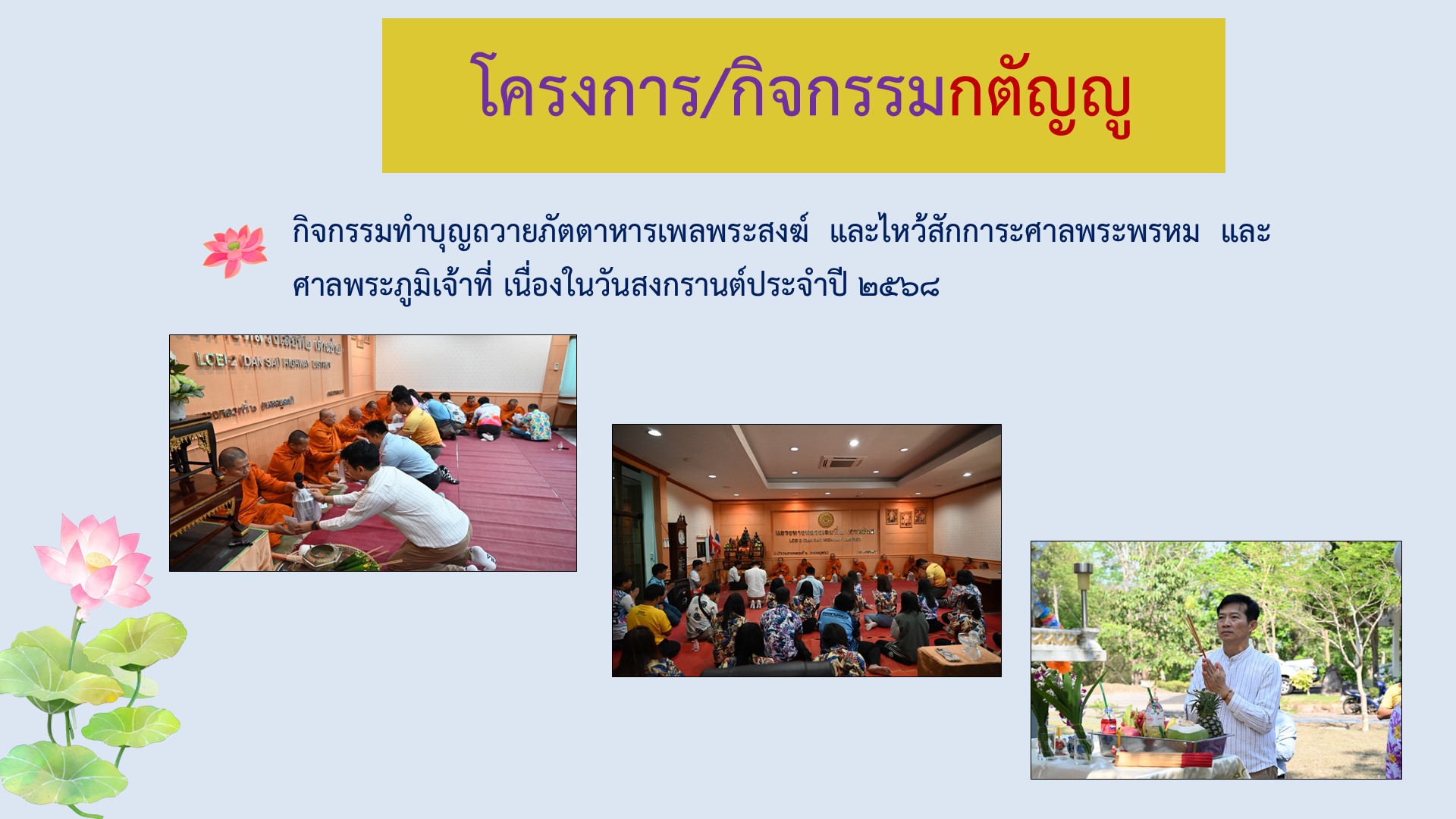 ข้อมูลภาพกิจกรรม : รายงานผลการดำเนินงานตามแผนปฏิบัติการส่งเสริมคุณธรรมจริยธรรม ประจำปีงบประมาณ พ.ศ.2568 คุณธรรม 5 ประการ