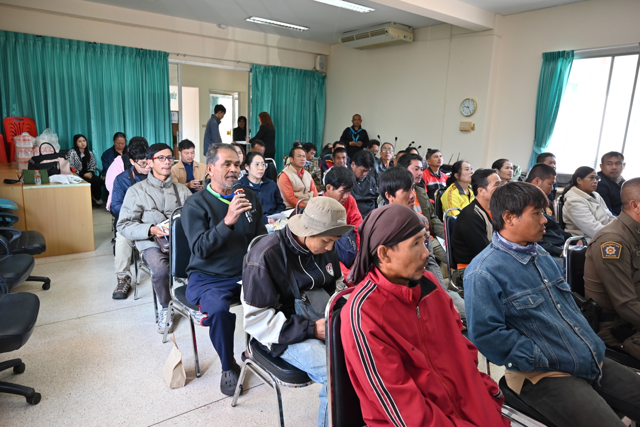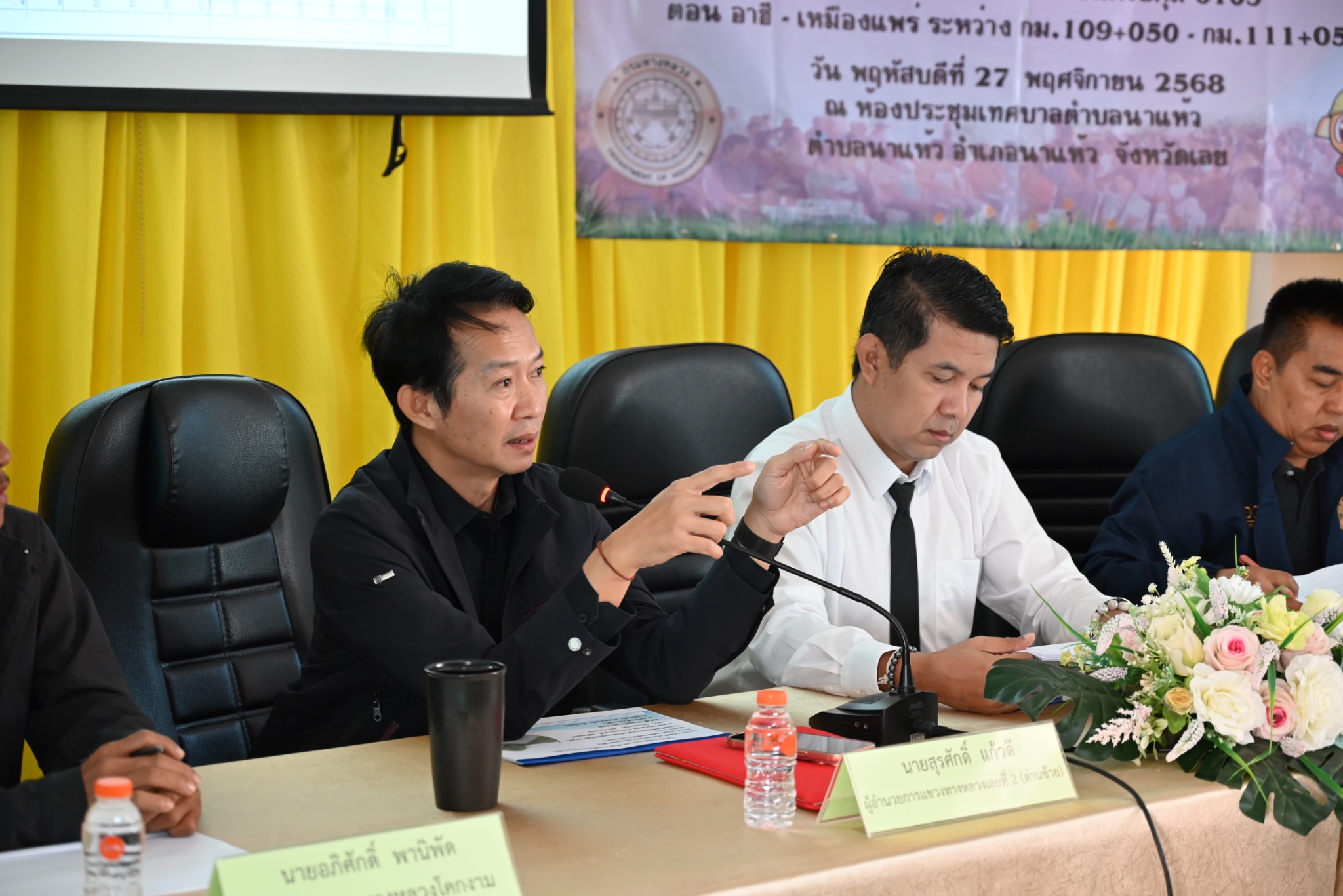 นายสุรศักดิ์ แก้วดี ผู้อำนวยการแขวงทางหลวงเลยที่ 2 (ด่านซ้าย) พร้อมด้วย รองผู้อำนวยการแขวงทางหลวง หัวหน้าหมวดทางหลวง หัวหน้างาน และเจ้าหน้าที่ ดำเนินการจัดการประชุมการมีส่วนร่วมของประชาชน เพื่อชี้แจงรายละเอียดและรับฟังความคิดเห็นและข้อเสนอแนะโครงการพัฒนาทางหลวงเพื่อสนับสนุนระบบคมนาคมและโลจิสติกส์ กิจกรรมก่อสร้างเพิ่มประสิทธิภาพ ทางหลวง งานก่อสร้างเพิ่มประสิทธิภาพทางหลวง ทางหลวงหมายเลข 2195 ตอน อาฮี - เหมืองแพร่ ระหว่าง กม.109+050 - กม.111+050 ณ เทศบาลตำบลนาแห้ว ตำบลนาแห้ว อำเภอนาแห้ว จังหวัดเลย