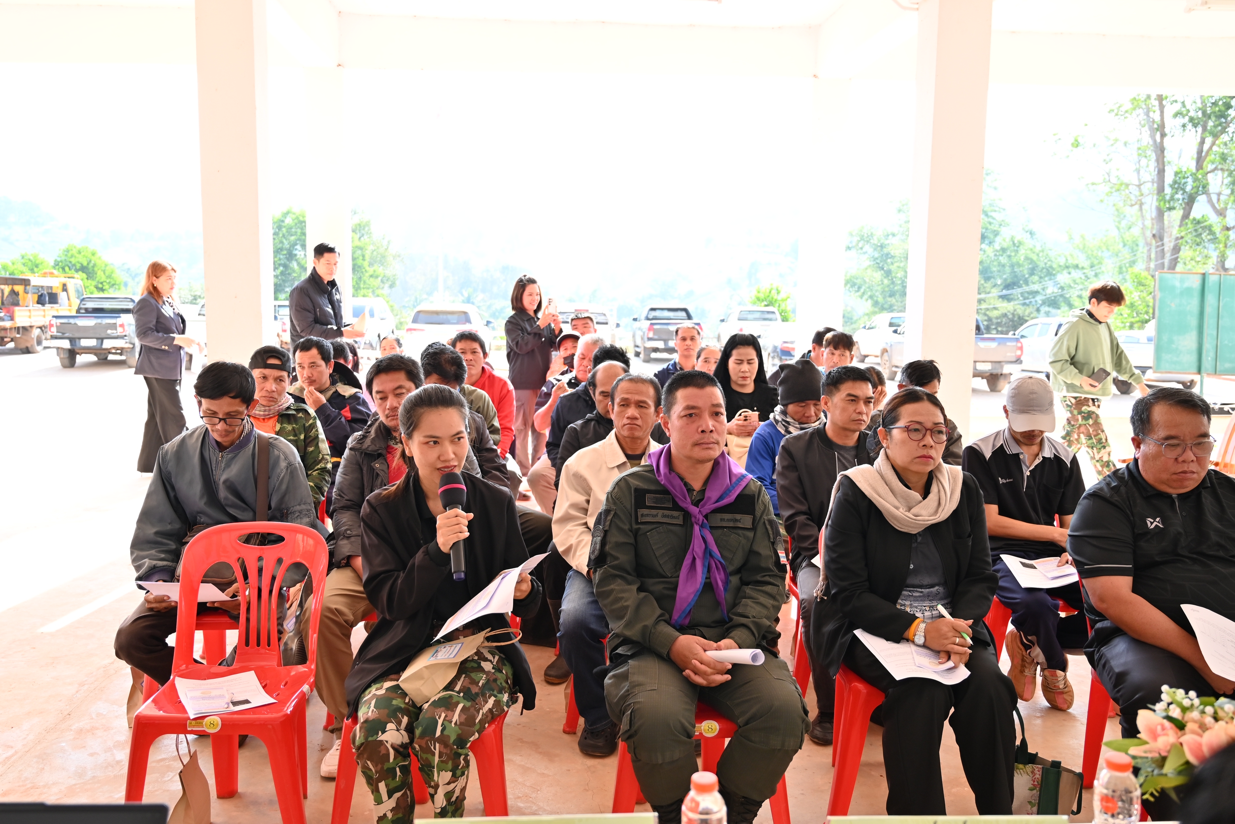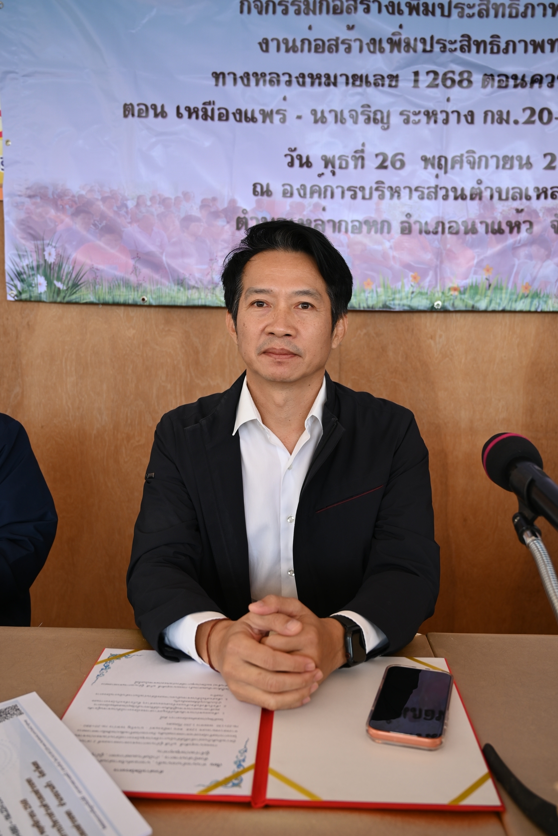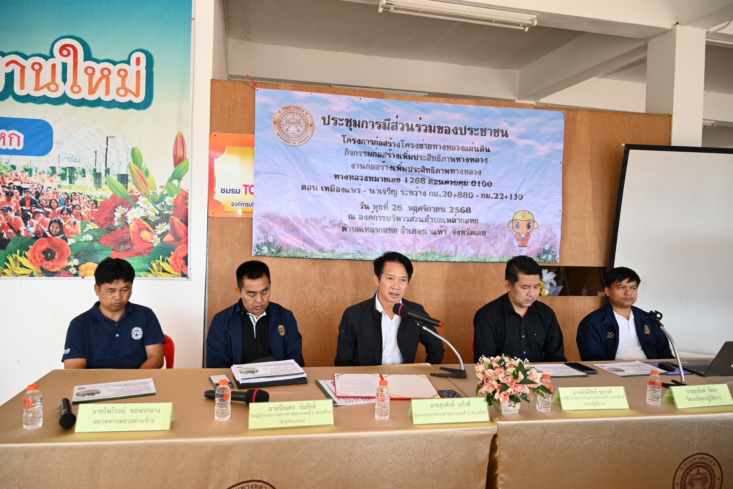 การประชุมการมีส่วนร่วมของประชาชน เพื่อชี้แจงรายละเอียดและรับฟังความคิดเห็นและข้อเสนอแนะ โครงการก่อสร้างโครงข่ายทางหลวงแผ่นดิน กิจกรรมก่อสร้างเพิ่มประสิทธิภาพทางหลวง งานก่อสร้าง เพิ่มประสิทธิภาพทางหลวง ทางหลวง หมายเลข 1268 ตอนควบคุม 0100 ตอน เหมืองแพร่ - นาเจริญ ระหว่าง กม.20+880 - กม.22+130