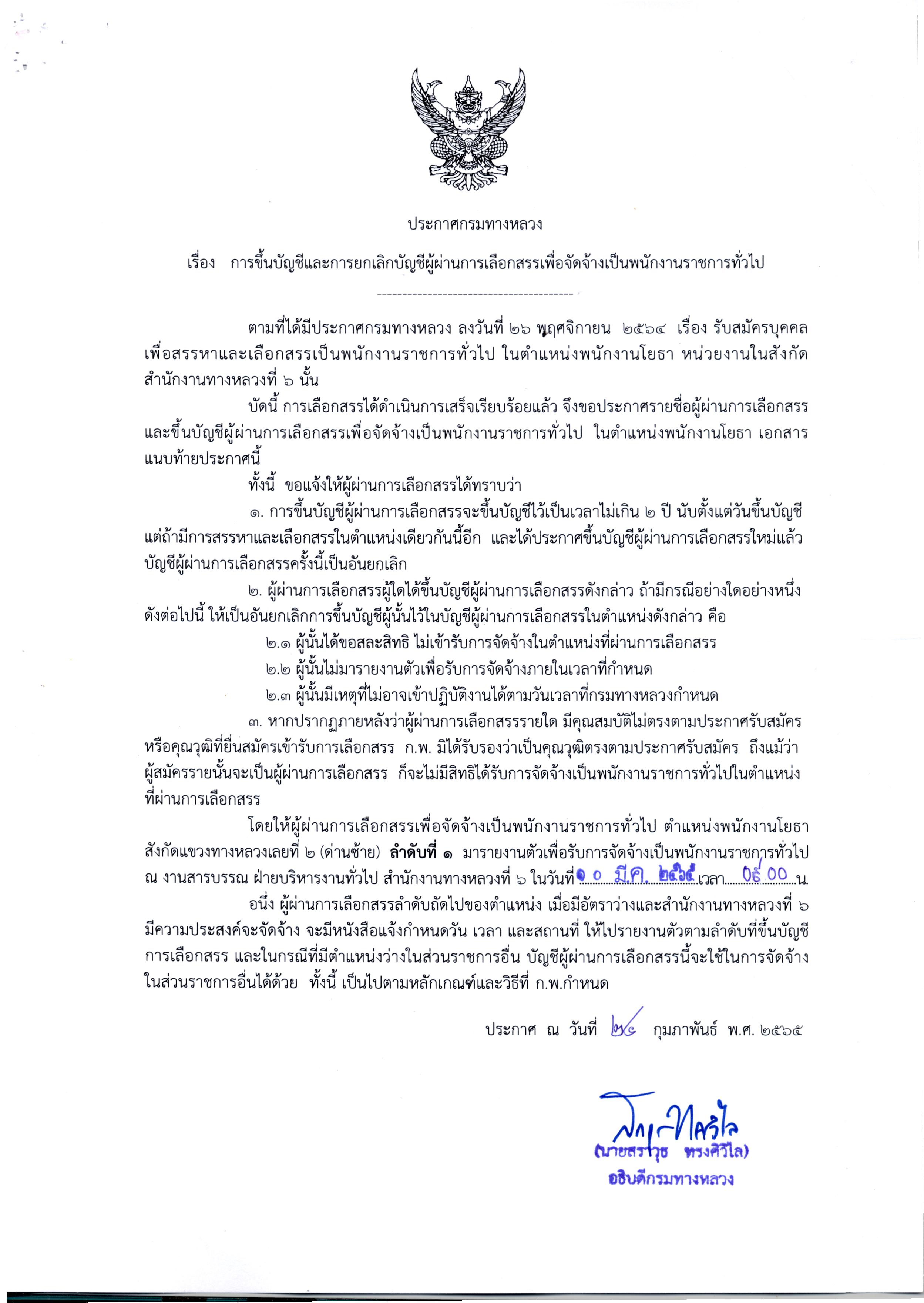 ประกาศขึ้นบัญชีและยกเลิกบัญชีรายชื่อผู้ผ่านการเลือกสรรเพื่อจัดจ้างเป็นพนักงานราชการทั่วไป