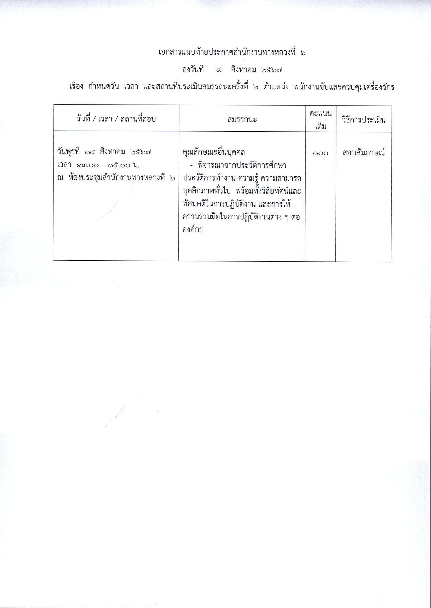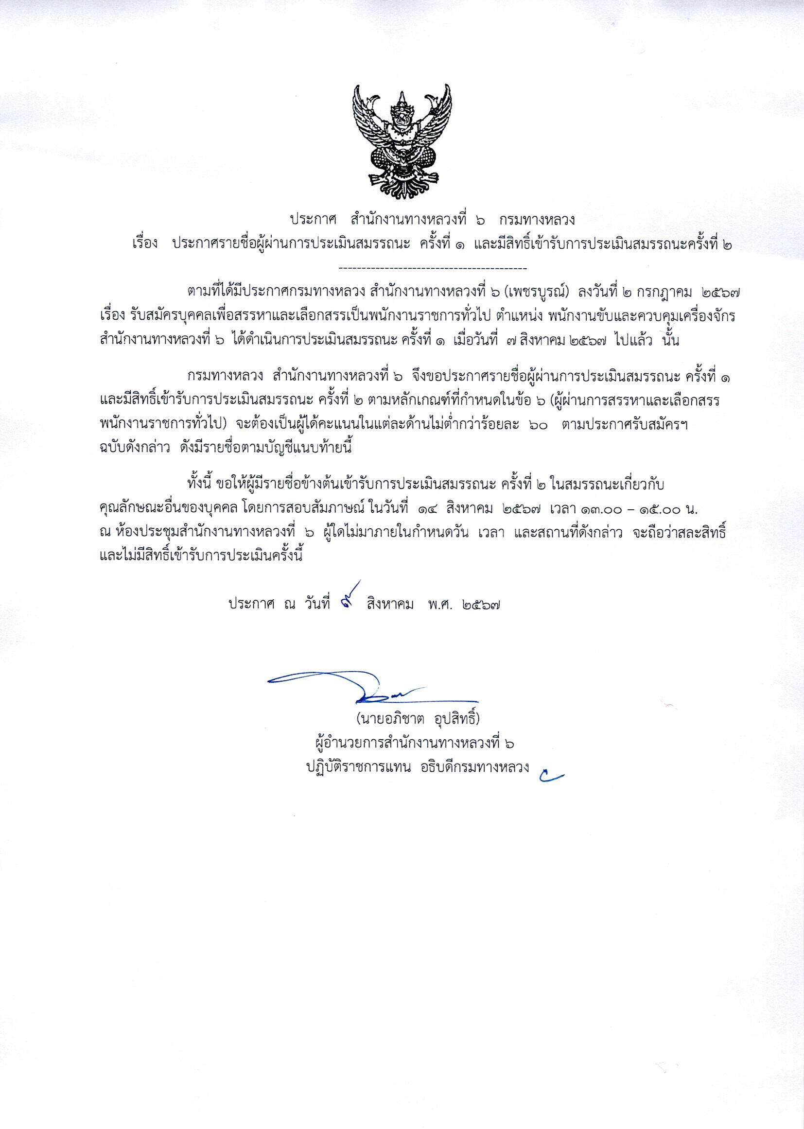 ประกาศรายชื่อผู้ผ่านการประเมินสมรรถนะครั้งที่ 1 และกำหนดวัน เวลา สถานที่ในการประเมินสมรรถนะครั้งที่ 2 ตำแหน่งพนักงานขับและควบคุมเครื่องจักร