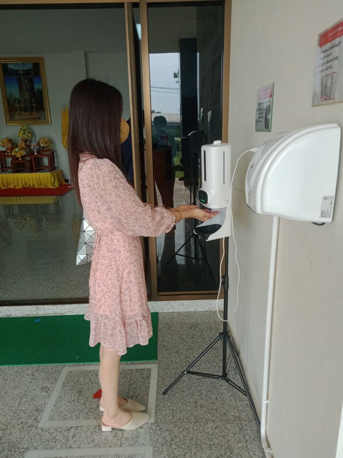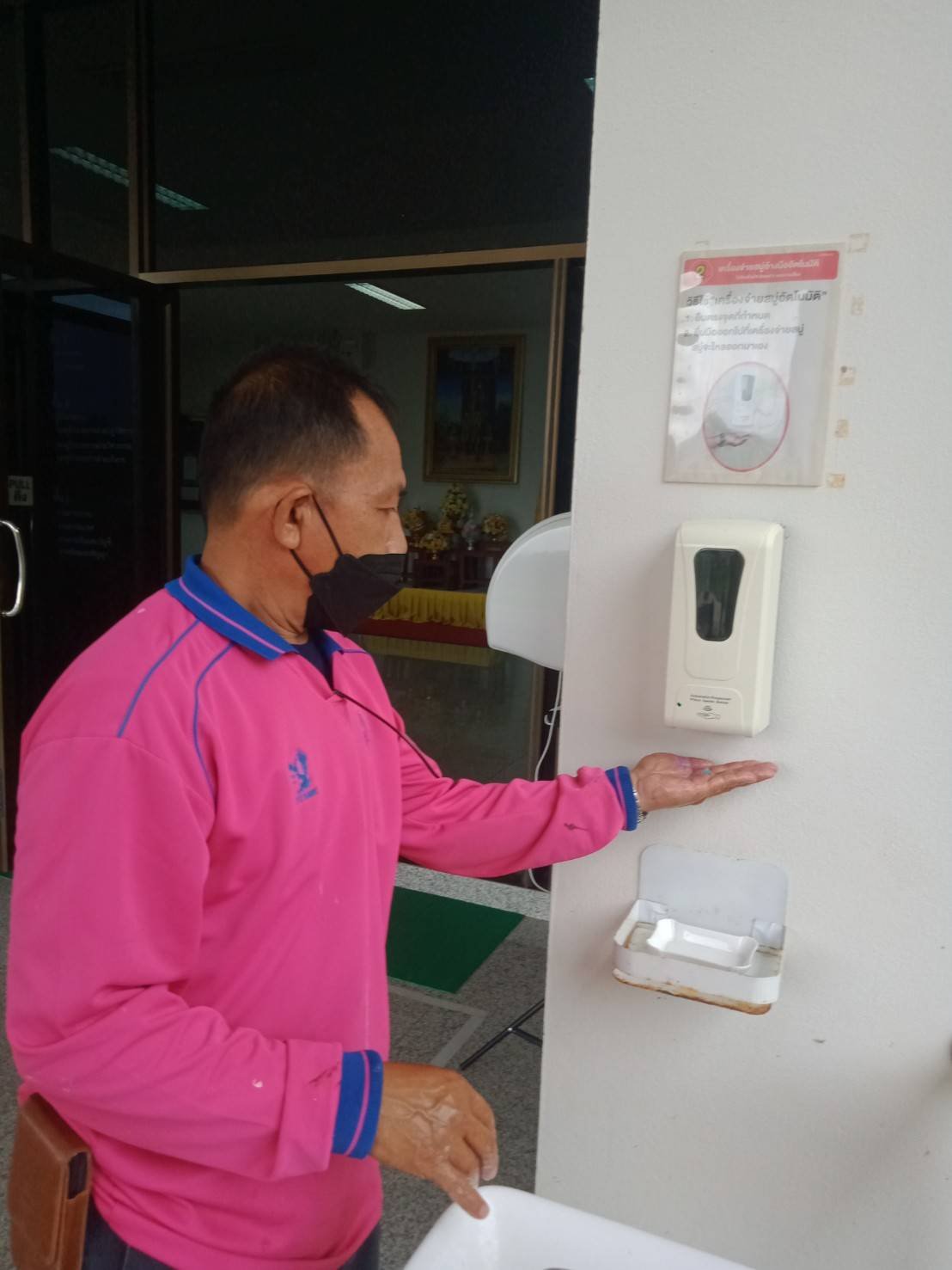 ตั้งจุดคัดกรองด้วยเครื่องวัดอุณหภูมิและลงทะเบียนไทยชนะ บริเวณทางเข้าหน้าสำนักงาน ตรวจวัดไข้ และคัดกรองข้าราชการ เจ้าหน้าที่ ประชาชน ที่มาติดต่อราชการ เพื่อเฝ้าระวังและป้องกันการแพร่ระบาดเชื้อไวรัส COVID – 19