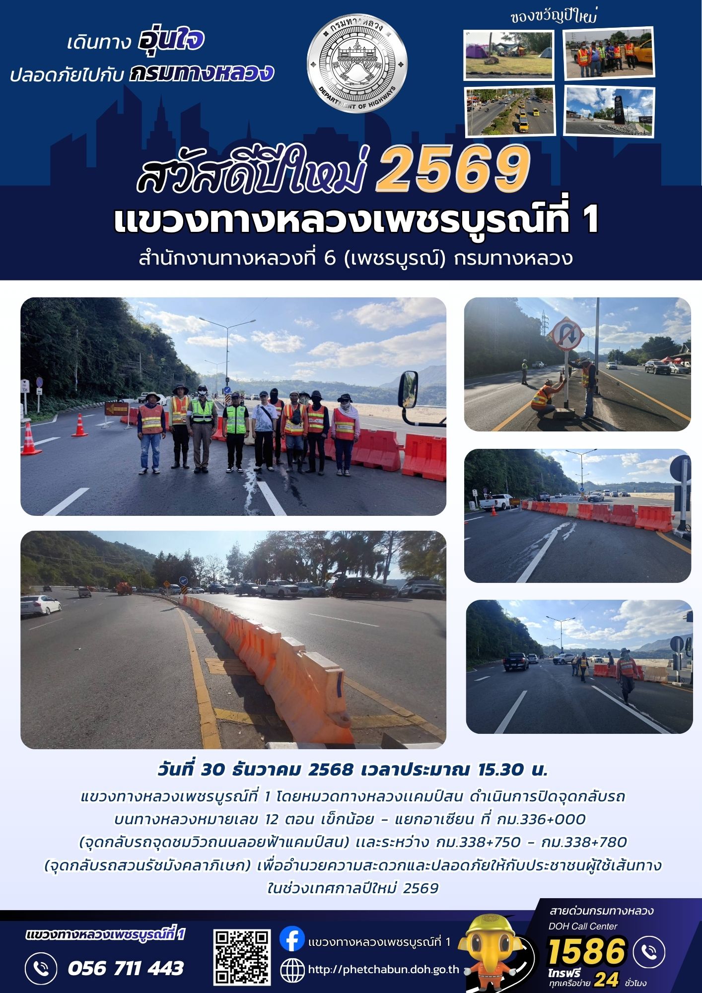 นายเดชา พรวนพิทักษ์ ผู้อำนวยการแขวงทางหลวงเพชรบูรณ์ที่ 1 พร้อมคณะ ลงพื้นที่ตรวจเยี่ยม เพื่อสร้างขวัญและกำลังใจให้เจ้าหน้าที่ผู้ปฏิบัติงานช่วงเทศกาลปีใหม่ 2569 ณ จุดให้บริการทั่วไทย (สามเเยกเเคมป์สน)
