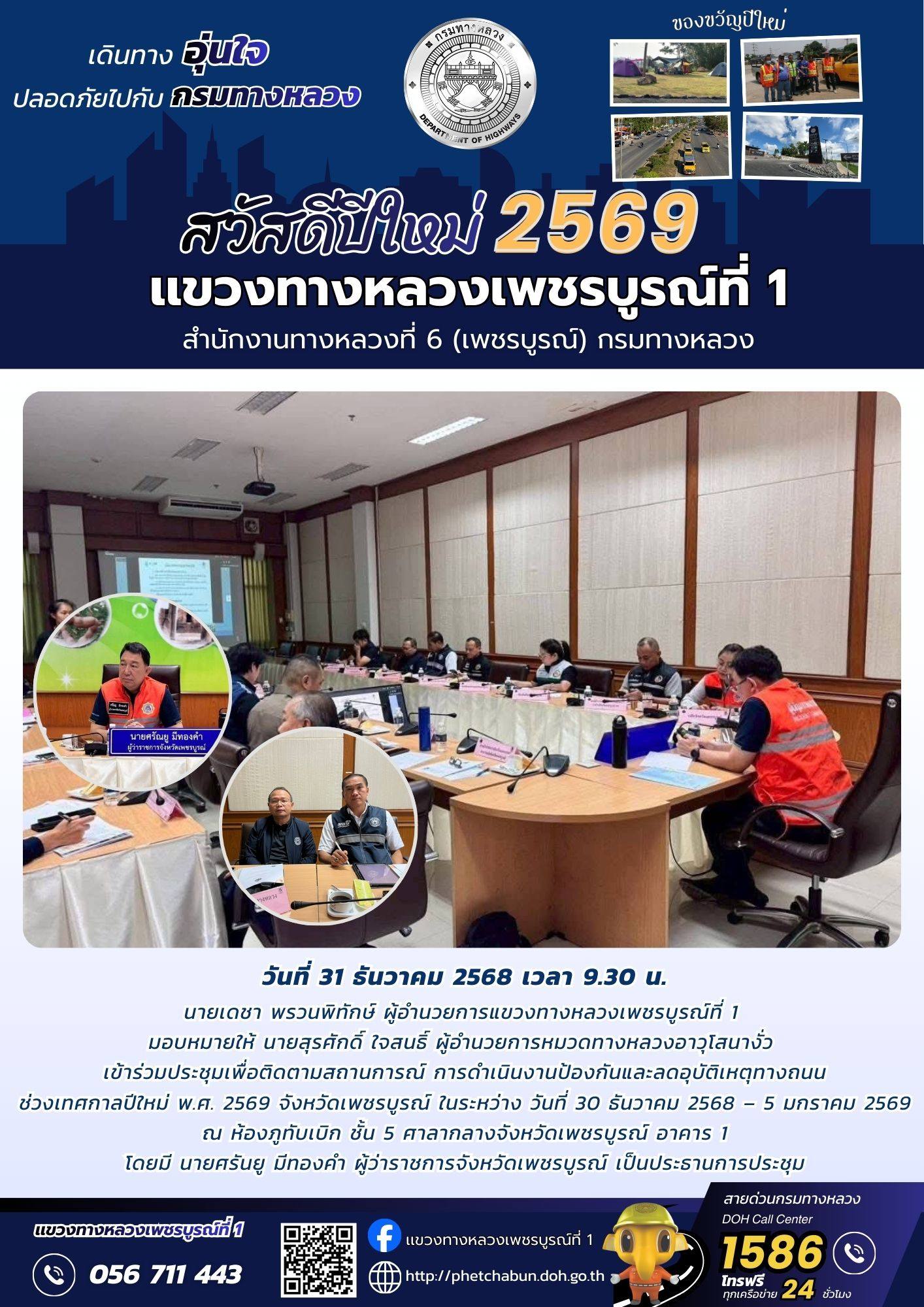 เข้าร่วมประชุมเพื่อติดตามสถานการณ์ การดำเนินงานป้องกันและลดอุบัติเหตุทางถนนช่วงเทศกาลปีใหม่ พ.ศ. 2569 จังหวัดเพชรบูรณ์ ในระหว่าง วันที่ 30 ธันวาคม 2568 – 5 มกราคม 2569 วันที่ 31 ธันวาคม 2568
