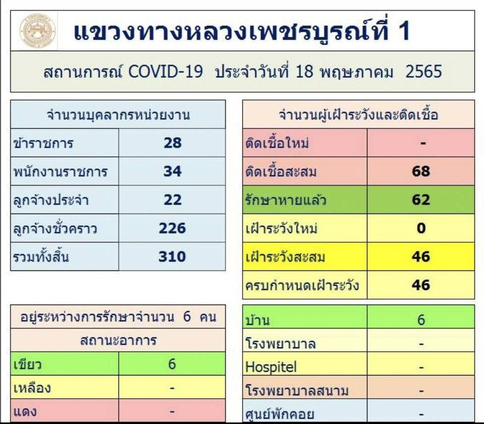รายงานสถานการณ์ COVID-19 แขวงทางหลวงเพชรบูรณ์ที่ 1 ประจำวันที่ 18 พฤษภาคม 2565