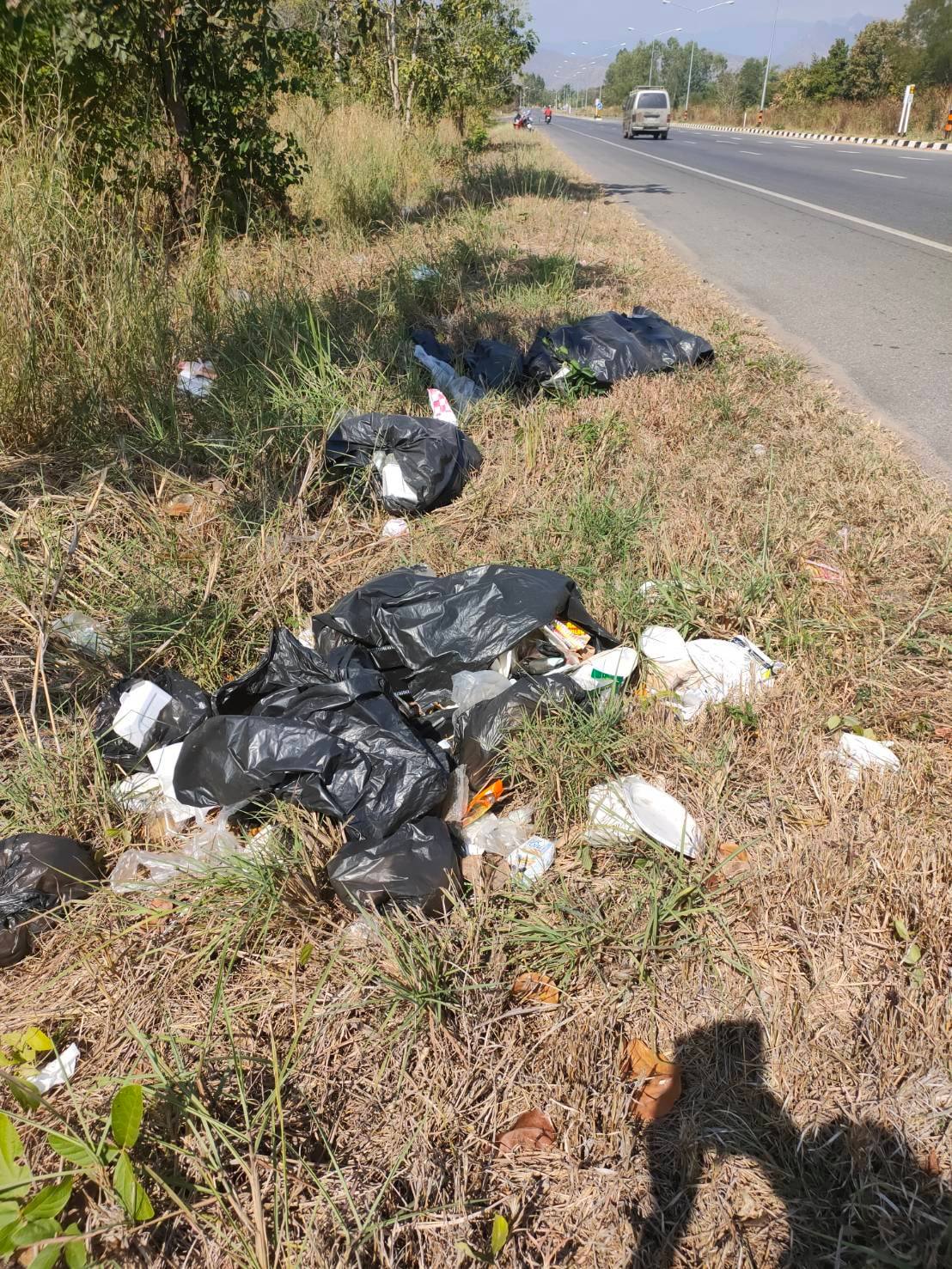 401 13/01/2565 ลงพื้นที่ ตรวจพบมีผู้นำขยะมาทิ้งบริเวณทางหลวงหมายเลข 21 ตอน หัวนา – สักหลง บริเวณแยกโคกหนองม่วง