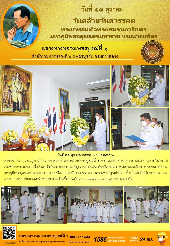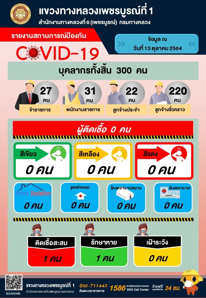 รายงานสถานการณ์ป้องกัน COVID-19 แขวงทางหลวงเพชรบูรณ์ที่ 1 ประจำวันที่ 13 ตุลาคม 2564