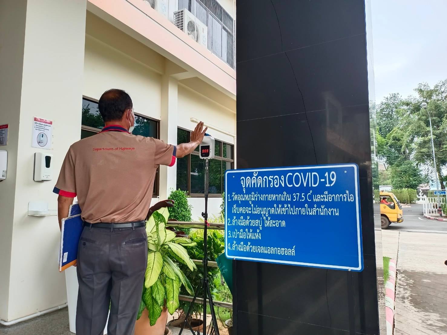 แขวงทางหลวงเพชรบูรณ์ที่ 1 จัดตั้งตู้พ่นน้ำยาฆ่าเชื้อ และจุดคัดกรองด้วยเครื่องวัดอุณหภูมิ วันที่ 14 ตุลาคม 2564 ตั้งแต่เวลา 07.00 น. – 16.30 น.