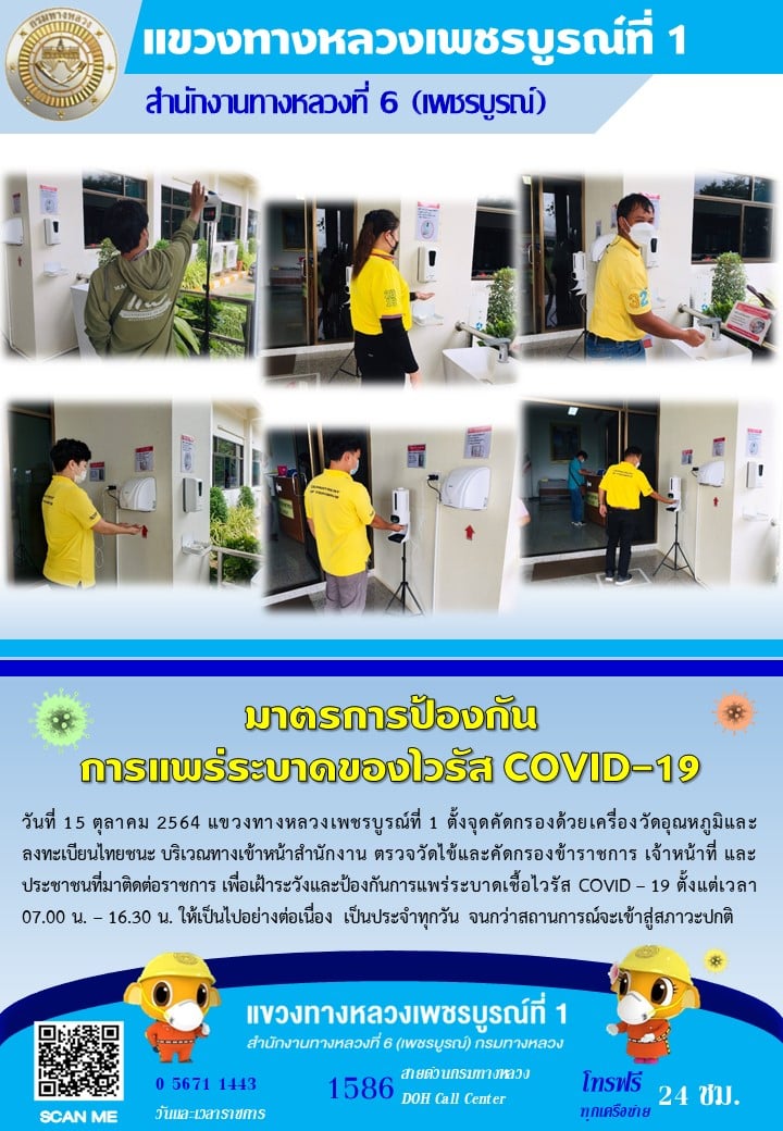 รายงานสถานการณ์ป้องกัน COVID-19 แขวงทางหลวงเพชรบูรณ์ที่ 1 ประจำวันที่ 15 ตุลาคม 2564