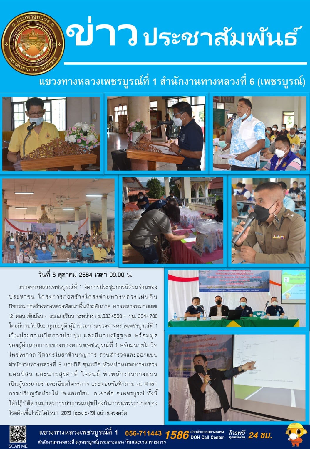 จัดการประชุมการมีส่วนร่วมของประชาชน โครงการก่อสร้างโครงข่ายทางหลวงแผ่นดิน กิจกรรมก่อสร้างทางหลวงพัฒนาพื้นที่ระดับภาค ทางหลวงหมายเลข 12 ตอน เข็กน้อย - แยกอาเซียน ระหว่าง กม.333+550 – กม. 334+700