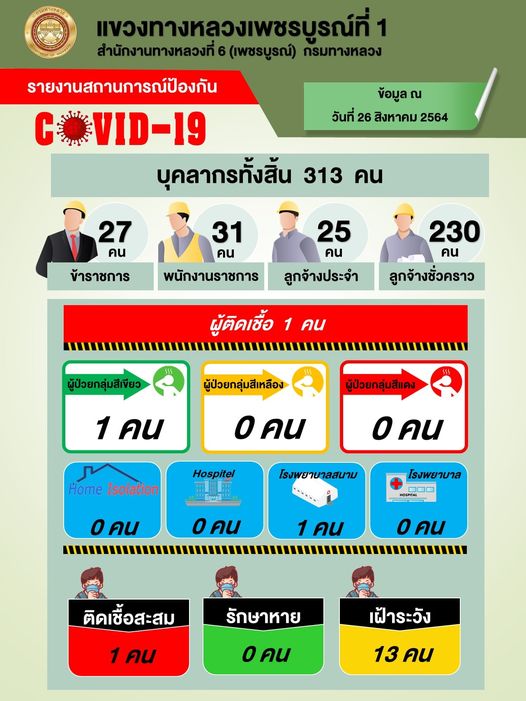 รายงานสถานการณ์ COVID-19 แขวงทางหลวงเพชรบูรณ์ที่ 1 ประจำวันที่ 26 สิงหาคม 2564
