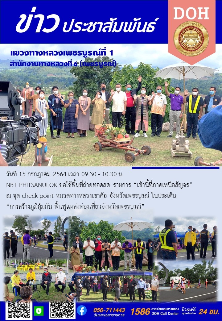 NBT PHITSANULOK ขอใช้พื้นที่ถ่ายทอดสด รายการ “เช้านี้ที่ภาคเหนือสัญจร” ณ จุด check point หมวดทางหลวงเขาค้อ จังหวัดเพชรบูรณ์ ในประเด็น “การสร้างภูมิคุ้มกัน ฟื้นฟูแหล่งท่องเที่ยวจังหวัดเพชรบูรณ์”