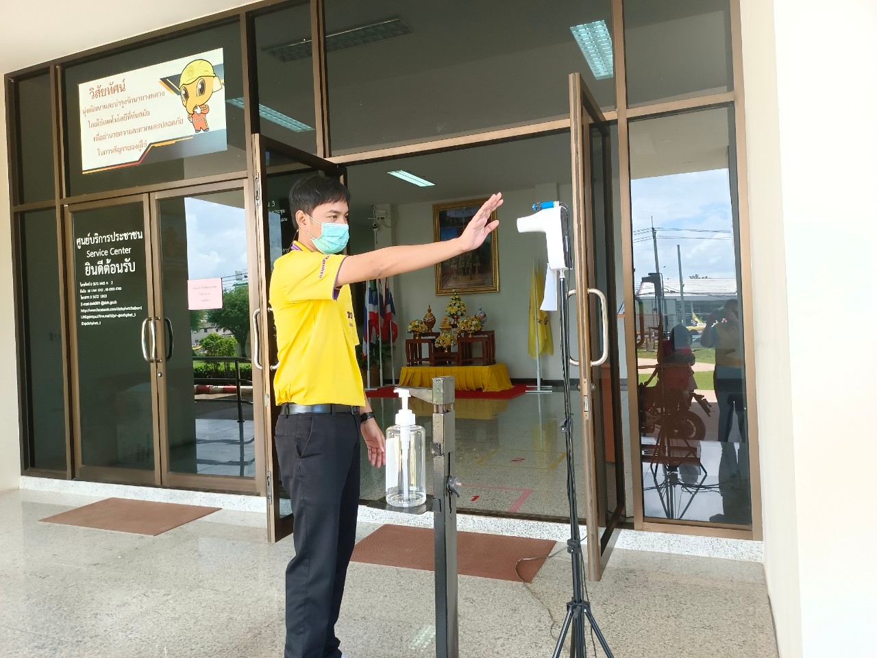 แขวงทางหลวงเพชรบูรณ์ที่ 1 จัดตั้งตู้พ่นน้ำยาฆ่าเชื้อ และจุดคัดกรองด้วยเครื่องวัดอุณหภูมิ วันที่ 9 กรกฎาคม 2564 ตั้งแต่เวลา 07.00 น. – 16.30 น.
