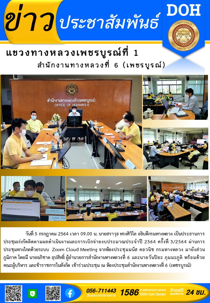 ประชุมเร่งรัดติดตามผลดำเนินงานและการเบิกจ่ายงบประมาณประจำปี 2564 ครั้งที่ 3/2564 ผ่านการประชุมทางไกลด้วยระบบ Zoom Cloud Meeting