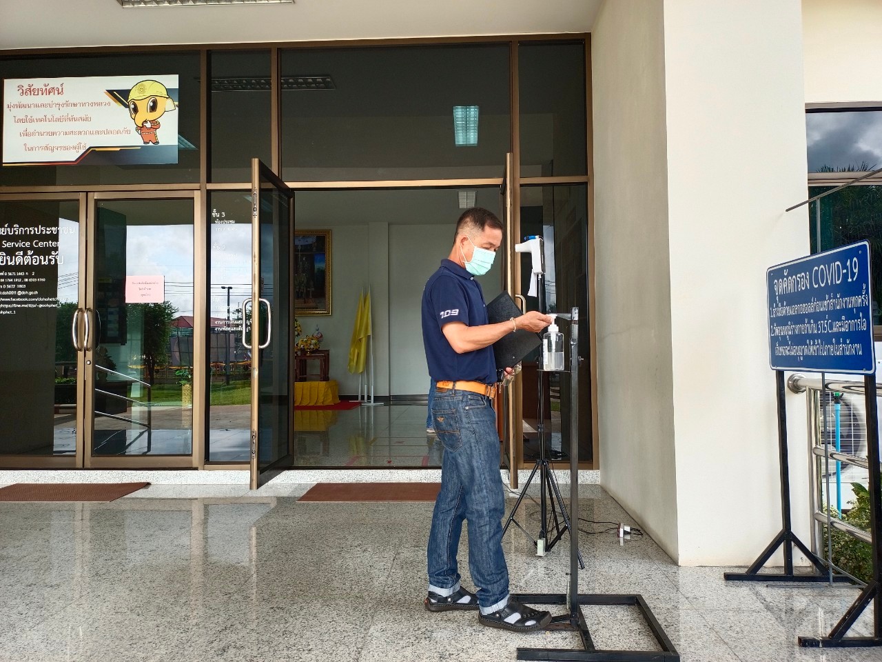 แขวงทางหลวงเพชรบูรณ์ที่ 1 จัดตั้งตู้พ่นน้ำยาฆ่าเชื้อ และจุดคัดกรองด้วยเครื่องวัดอุณหภูมิ วันที่ 1 กรกฎาคม 2564 ตั้งแต่เวลา 07.00 น. – 16.30 น.