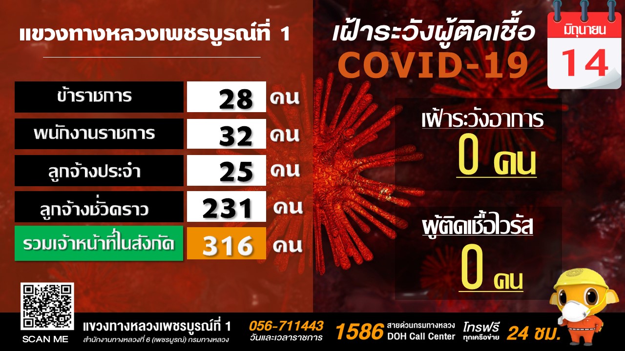รายงานสถานการณ์ COVID-19 แขวงทางหลวงเพชรบูรณ์ที่ 1 ประจำวันที่ 14 มิถุนายน 2564
