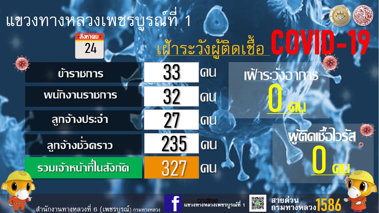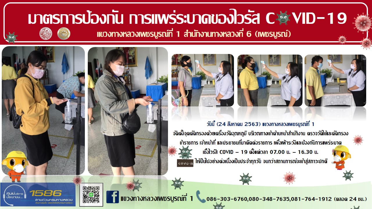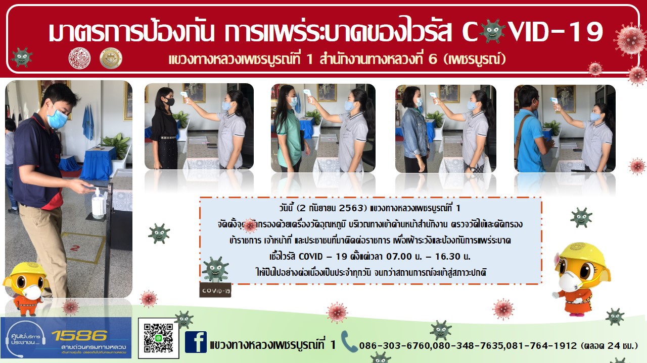 แขวงทางหลวงเพชรบูรณ์ที่ 1 จัดตั้งตู้พ่นน้ำยาฆ่าเชื้อ และจุดคัดกรองด้วยเครื่องวัดอุณหภูมิ