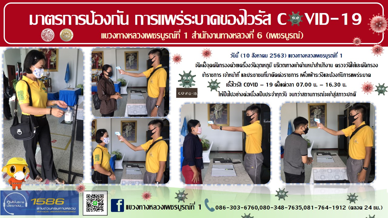 จัดตั้งตู้พ่นน้ำยาฆ่าเชื้อ และจุดคัดกรองด้วยเครื่องวัดอุณหภูมิ |