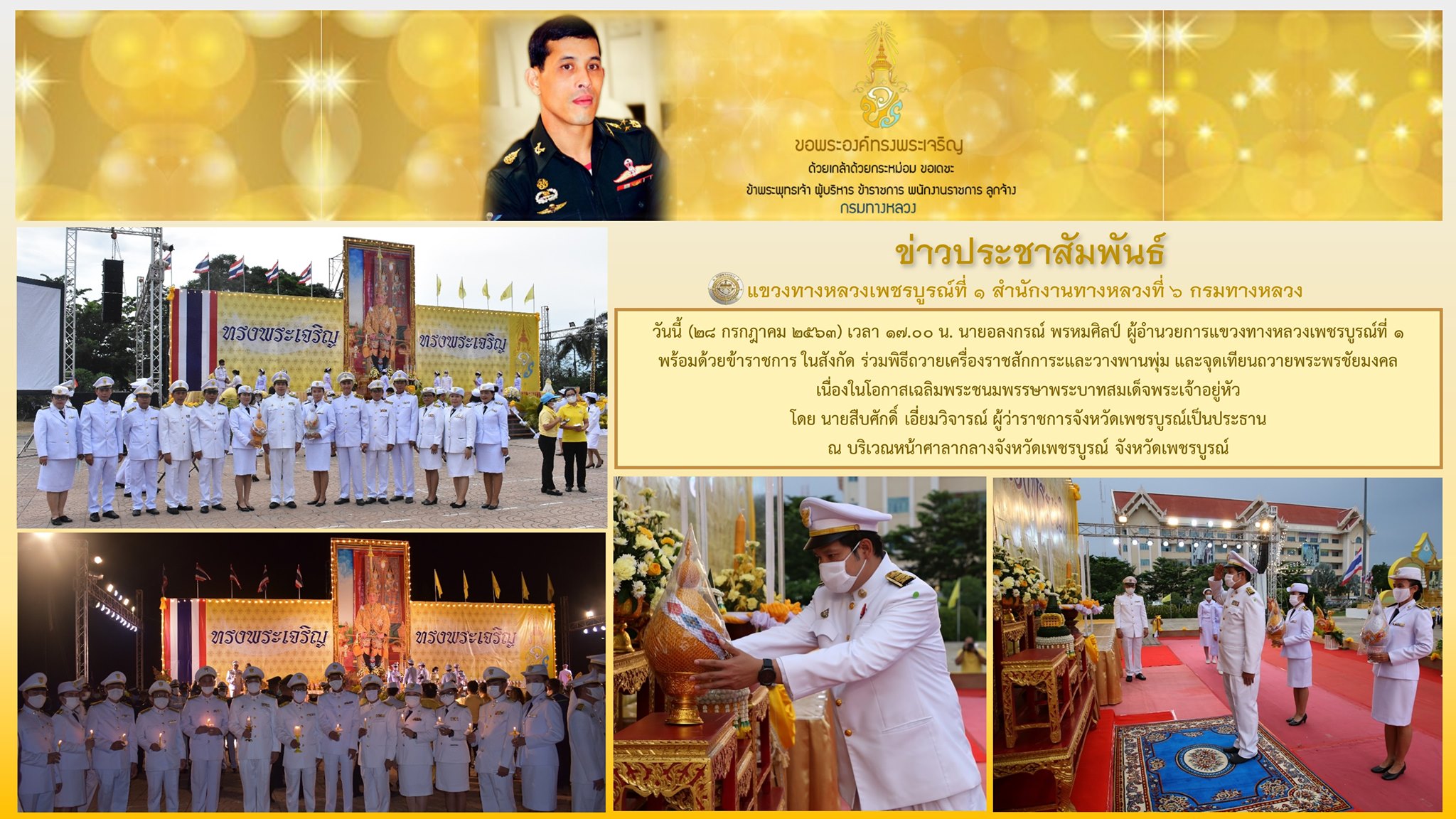 ร่วมพิธีถวายเครื่องราชสักการะและวางพานพุ่ม และจุดเทียนถวายพระพรชัยมงคลเนื่องในโอกาสเฉลิมพระชนมพรรษาพระบาทสมเด็จพระเจ้าอยู่หัว