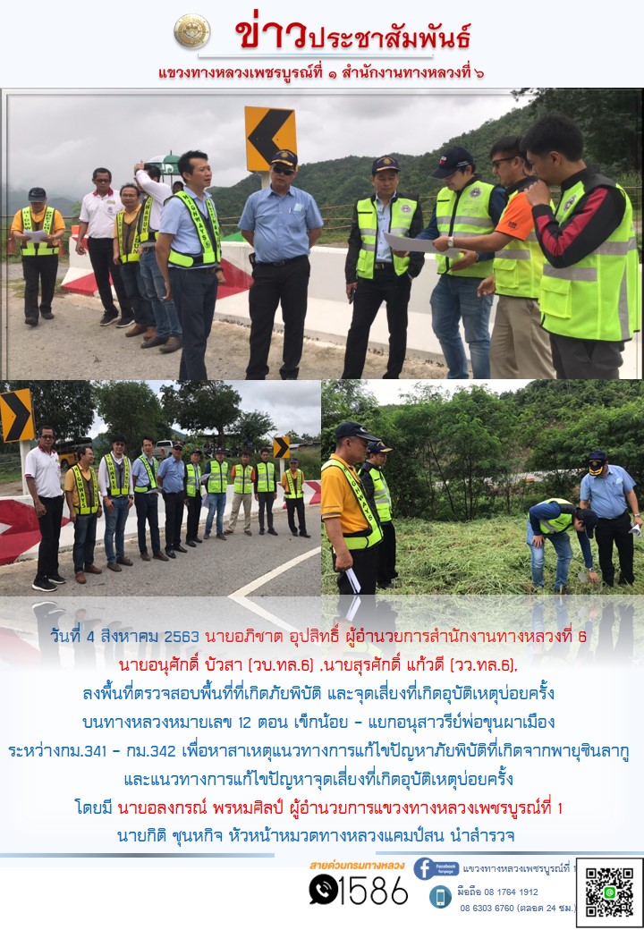 ลงพื้นที่ตรวจสอบพื้นที่ที่เกิดภัยพิบัติ และจุดเสี่ยงที่เกิดอุบัติเหตุบ่อยครั้ง