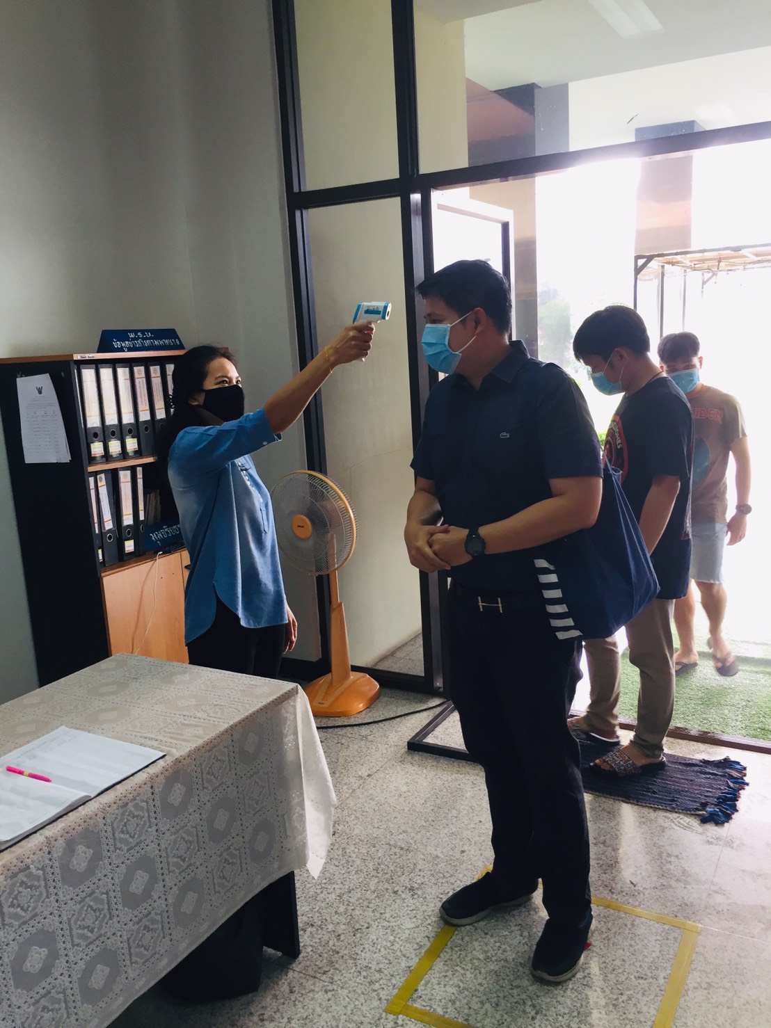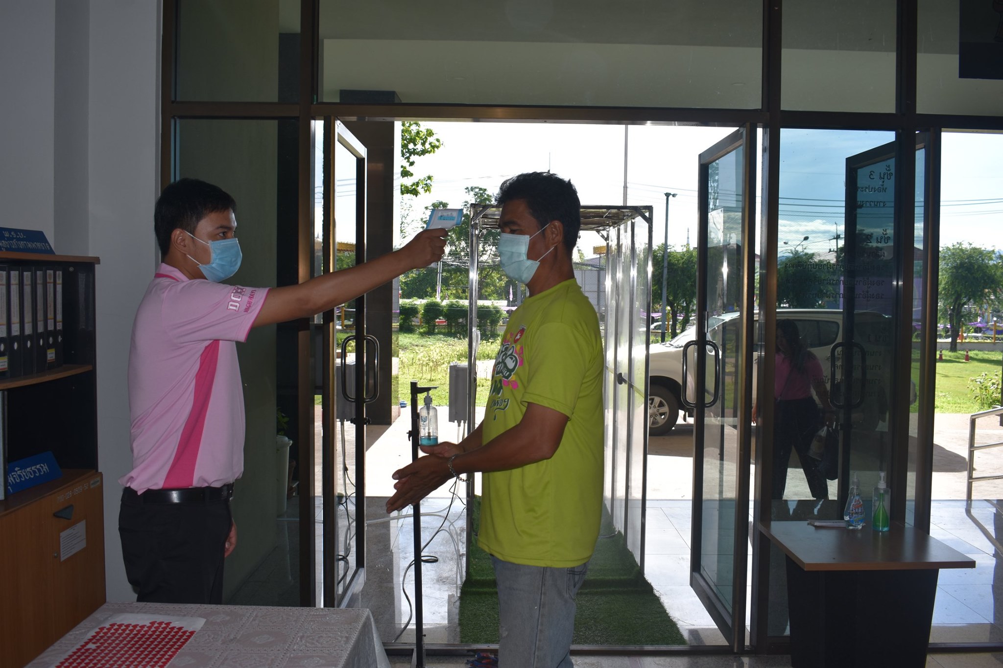 ตรวจวัดไข้และคัดกรองข้าราชการ เจ้าหน้าที่และประชาชนที่มาติดต่อราชการ เพื่อเฝ้าระวังและป้องกัน การแพร่ระบาด เชื้อไวรัส COVID – 19