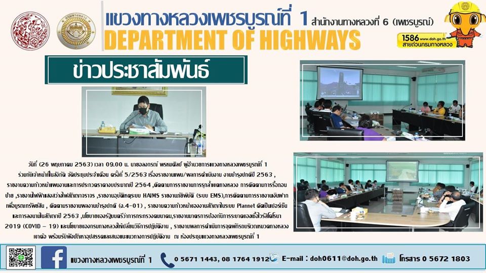 รายงานสถานการณ์ COVID-19 แขวงทางหลวงเพชรบูรณ์ที่ 1 ประจำวันที่ 25 พฤษภาคม 2563