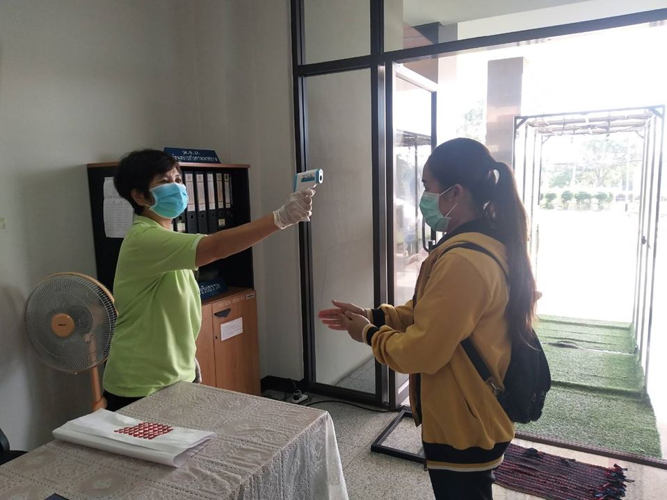 ตรวจวัดไข้และคัดกรองข้าราชการ เจ้าหน้าที่และประชาชนที่มาติดต่อราชการ เพื่อเฝ้าระวังและป้องกัน การแพร่ระบาด เชื้อไวรัส COVID – 19