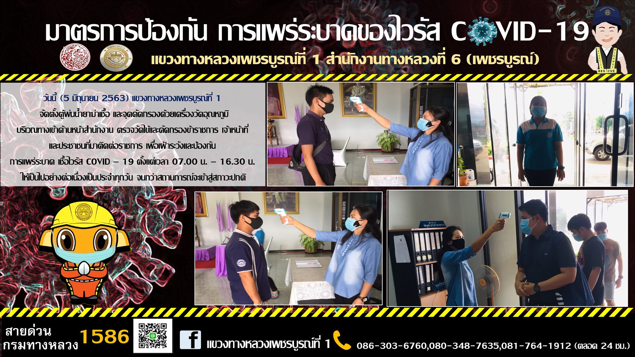 วันนี้ (5 มิถุนายน 2563) แขวงทางหลวงเพชรบูรณ์ที่ 1จัดตั้งตู้พ่นน้ำยาฆ่าเชื้อ และจุดคัดกรองด้วยเครื่องวัดอุณหภูมิ บริเวณทางเข้าด้านหน้าสำนักงาน ตรวจวัดไข้และคัดกรองข้าราชการ เจ้าหน้าที่และประชาชนที่มาติดต่อราชการ เพื่อเฝ้าระวังและป้องกัน การแพร่ระบาด เชื้อไวรัส COVID – 19 ตั้งแต่เวลา 07.00 น. – 16.30 น.