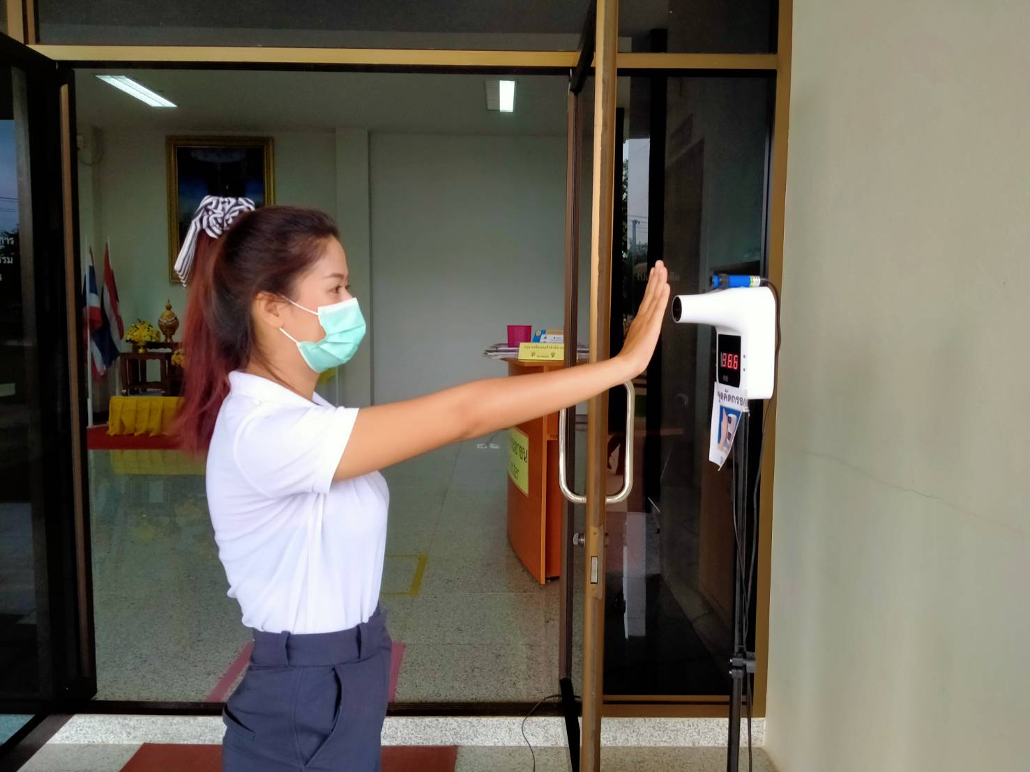 ได้จัดตั้งจุดคัดกรองด้วยเครื่องวัดอุณหภูมิ บริเวณทางเข้าด้านหน้สำนักงาน ตรวจวัดไข้และคัดกรองข้าราชการ เจ้าหน้าที่ และประชาชนที่มาติดต่อราชการ เพื่อเฝ้าระวังและป้องกันการแพร่ระบาด เชื้อไวรัส COVID – 19 ตั้งแต่เวลา 07.00 น. – 16.30 น. ให้เป็นไปอย่างต่อเนื่องเป็นประจำทุกวัน จนกว่าสถานการณ์จะเข้าสู่สภาวะปกติ