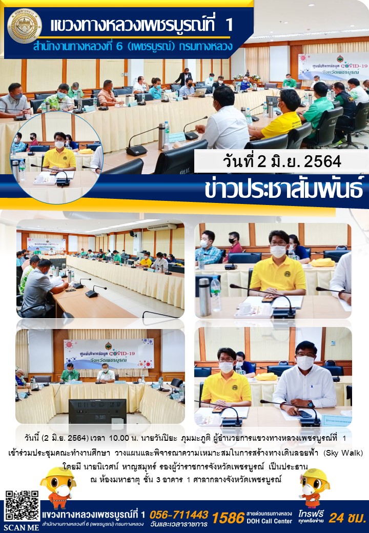วันนี้ (2 มิ.ย. 2564) เวลา 10.00 น. นายวันปิยะ ภุมมะภูติ ผู้อำนวยการแขวงทางหลวงเพชรบูรณ์ที่ 1 เข้าร่วมประชุมคณะทำงานศึกษา วางแผนและพิจารณาความเหมาะสมในการสร้างทางเดินลอยฟ้า (Sky Walk) โดยมี นายนิเวศน์ หาญสมุทร์ รองผู้ว่าราชการจังหวัดเพชรบูรณ์ เป็นประธาน ณ ห้องมหาธาตุ ชั้น 3 อาคาร 1 ศาลากลางจังหวัดเพชรบูรณ์