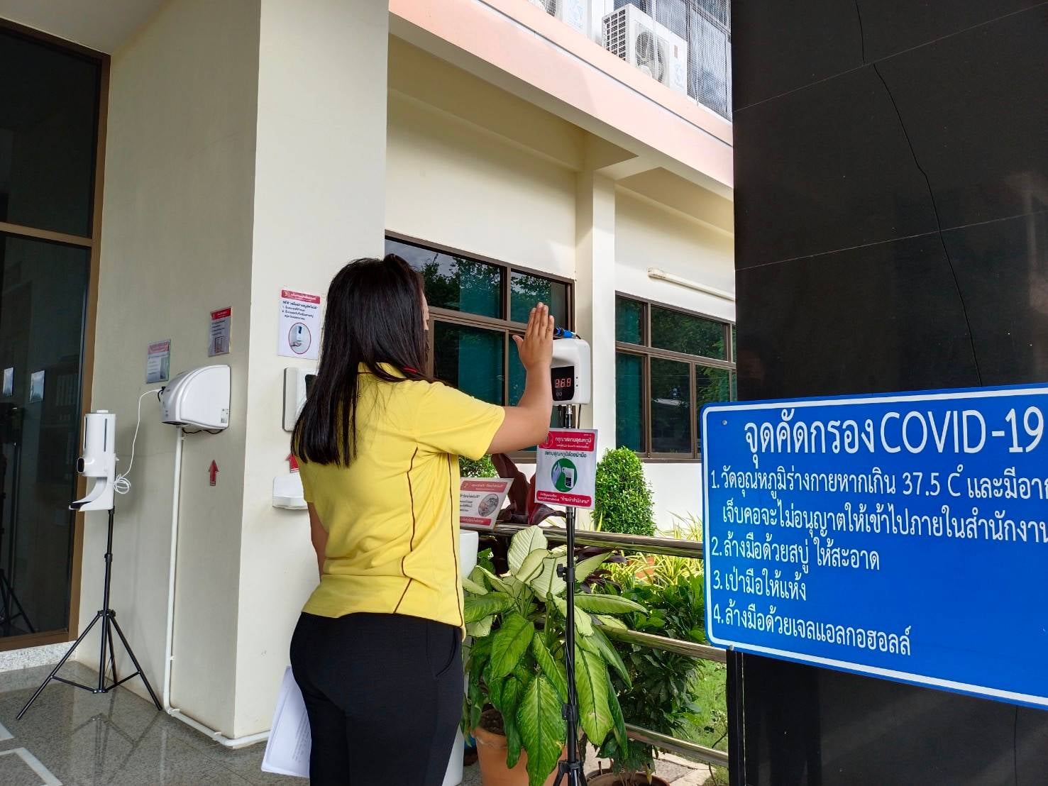 ได้จัดตั้งจุดคัดกรองด้วยเครื่องวัดอุณหภูมิ บริเวณทางเข้าด้านหน้สำนักงาน ตรวจวัดไข้และคัดกรองข้าราชการ เจ้าหน้าที่ และประชาชนที่มาติดต่อราชการ เพื่อเฝ้าระวังและป้องกันการแพร่ระบาด เชื้อไวรัส COVID – 19 ตั้งแต่เวลา 07.00 น. – 16.30 น. ให้เป็นไปอย่างต่อเนื่องเป็นประจำทุกวัน จนกว่าสถานการณ์จะเข้าสู่สภาวะปกติ